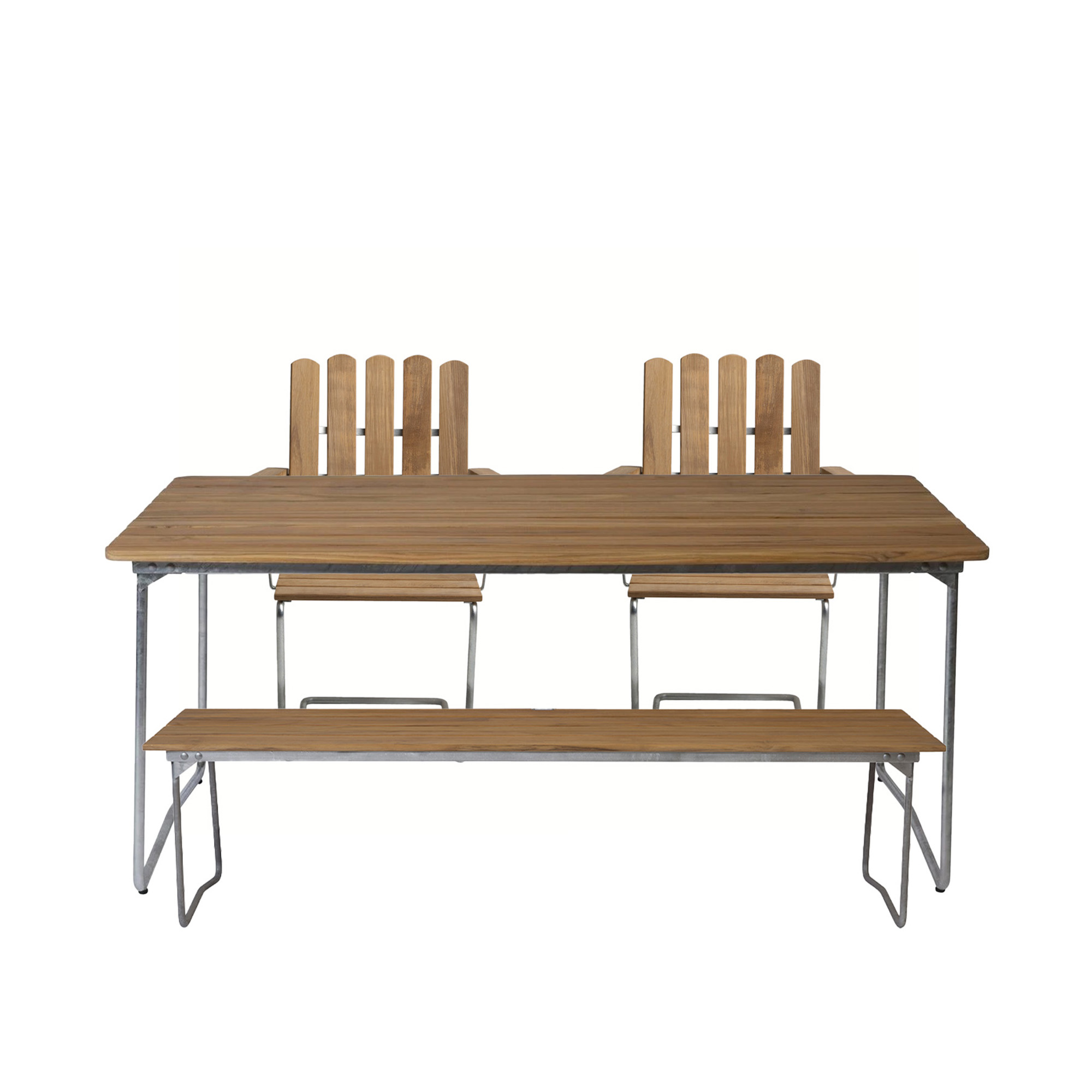 Grythyttan Stålmöbler - Klassikerserien Matgrupp med Bord B31, Trädgårdsbänk & 2 st A2 Fåtöljer Teak - Matgrupper utomhus - Metall/Trä