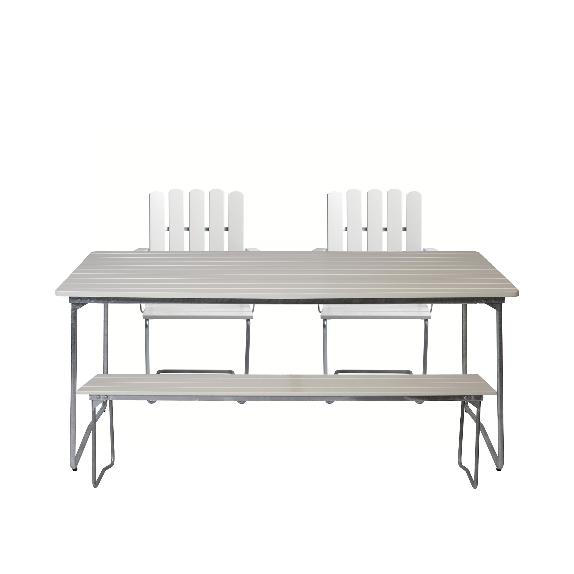 Grythyttan Stålmöbler - Klassikerserien Matgrupp med Bord B31, Trädgårdsbänk & 2 st A2 Fåtöljer Vitlackad Ek - Matgrupper utomhus - Metall/Trä