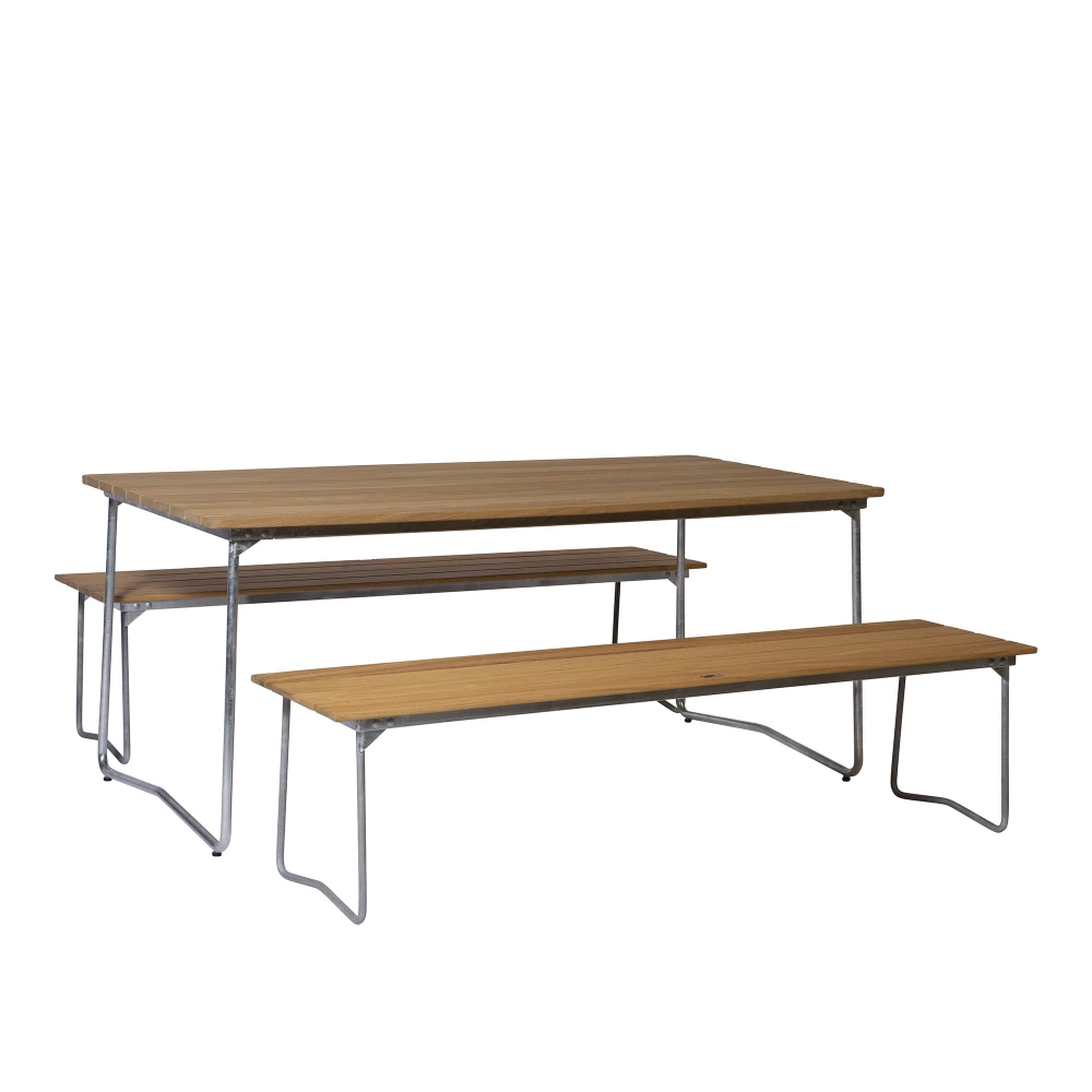 Grythyttan Stålmöbler - Klassikerserien Matgrupp med Matbord & 2 st Trädgårdsbänkar Oljad Ek - Matgrupper utomhus - Metall/Trä