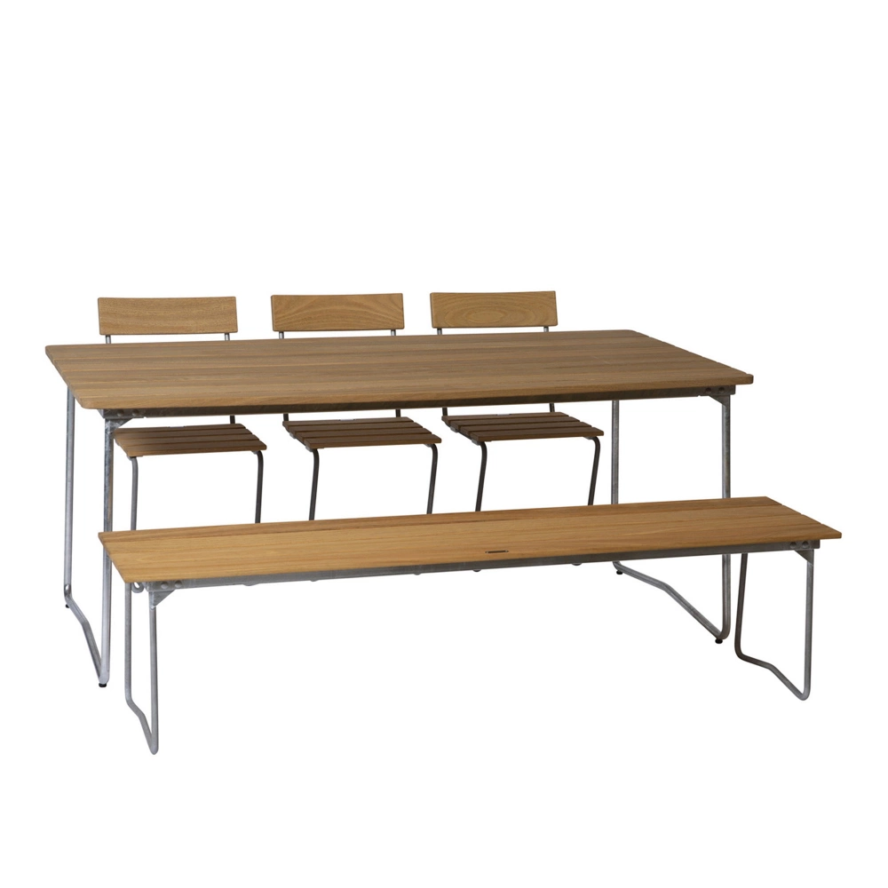 Grythyttan Stålmöbler - Klassikerserien Matgrupp Bord B25A, Bänk 8 & 4 st Stol 1 Oljad ek - Matgrupper utomhus