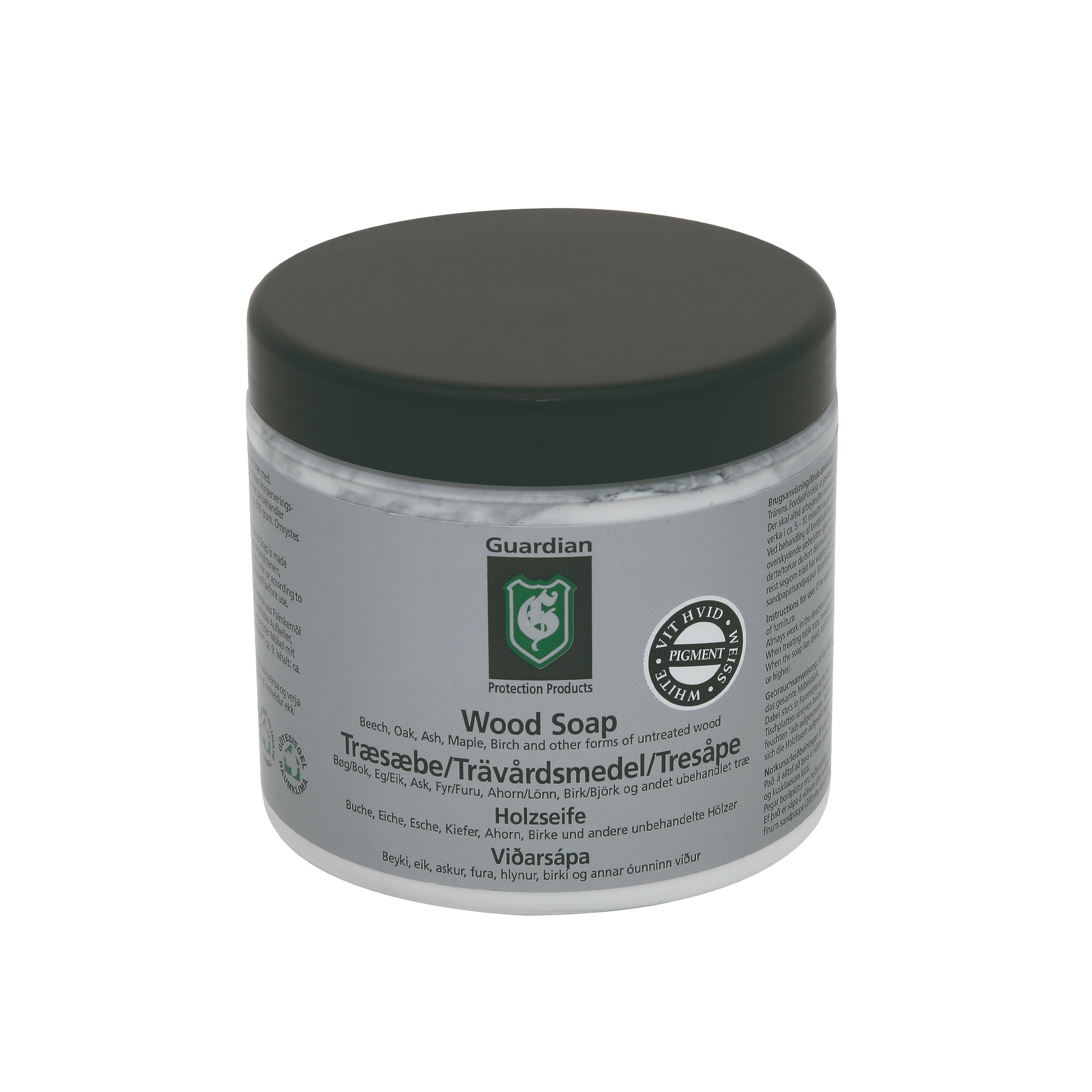 Träsåpan från Guardian används med fördel på obehandlat eller redan såpat trä. Såpan tillför näring och skyddar träet. Träsåpan, som är kokad på palmkärnor och kokosolja, är helt fri från parfym, färgämnen och blekningsmedel. Före träet behandlas med träsåpa rekommenderar vi att man använder Guardian Trärengöring.