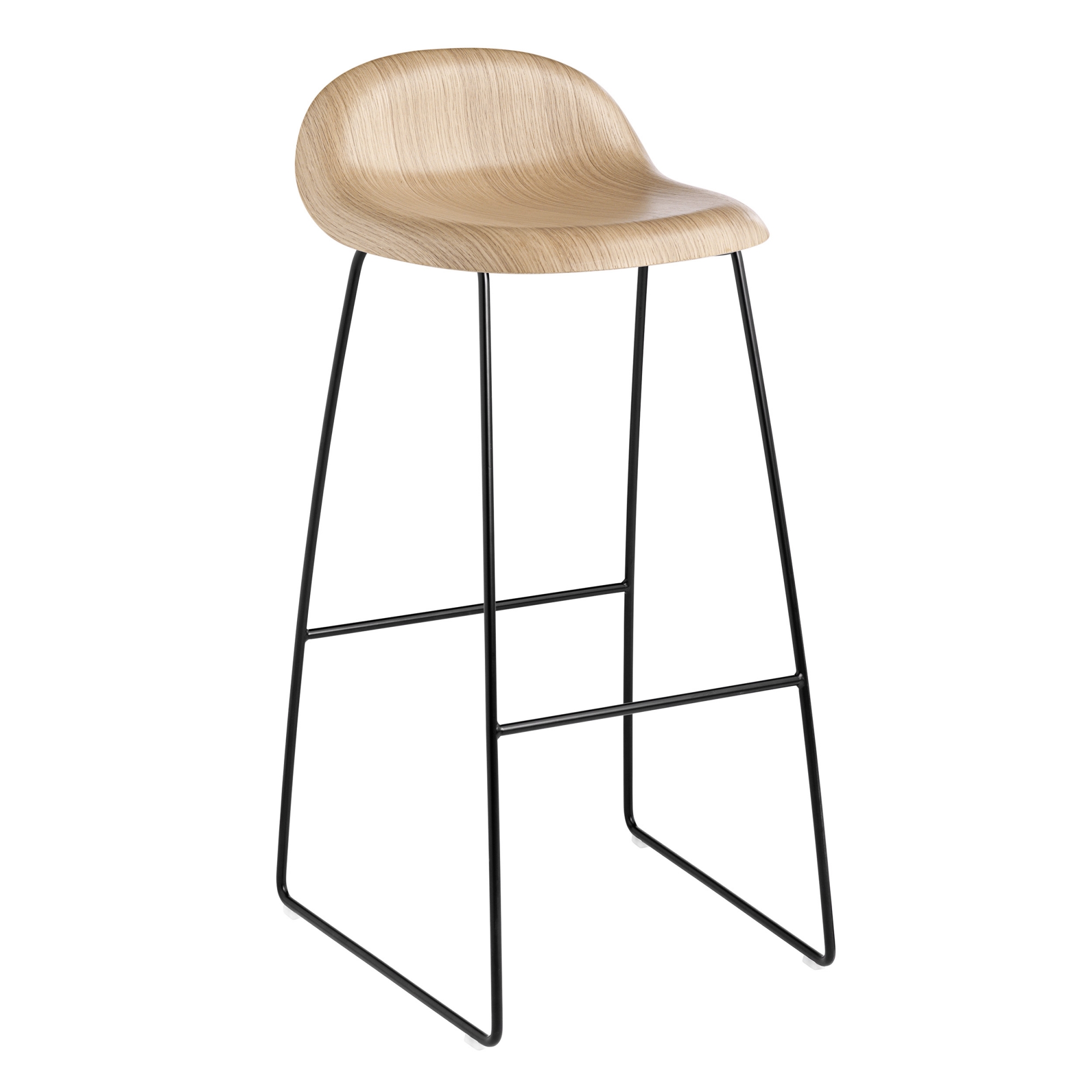 Gubi - 3D Bar Stool, Unupholstered, Black Sledge Base, Top - Oak 75 cm - Barstolar - Träfärgad - Metall/Trä
