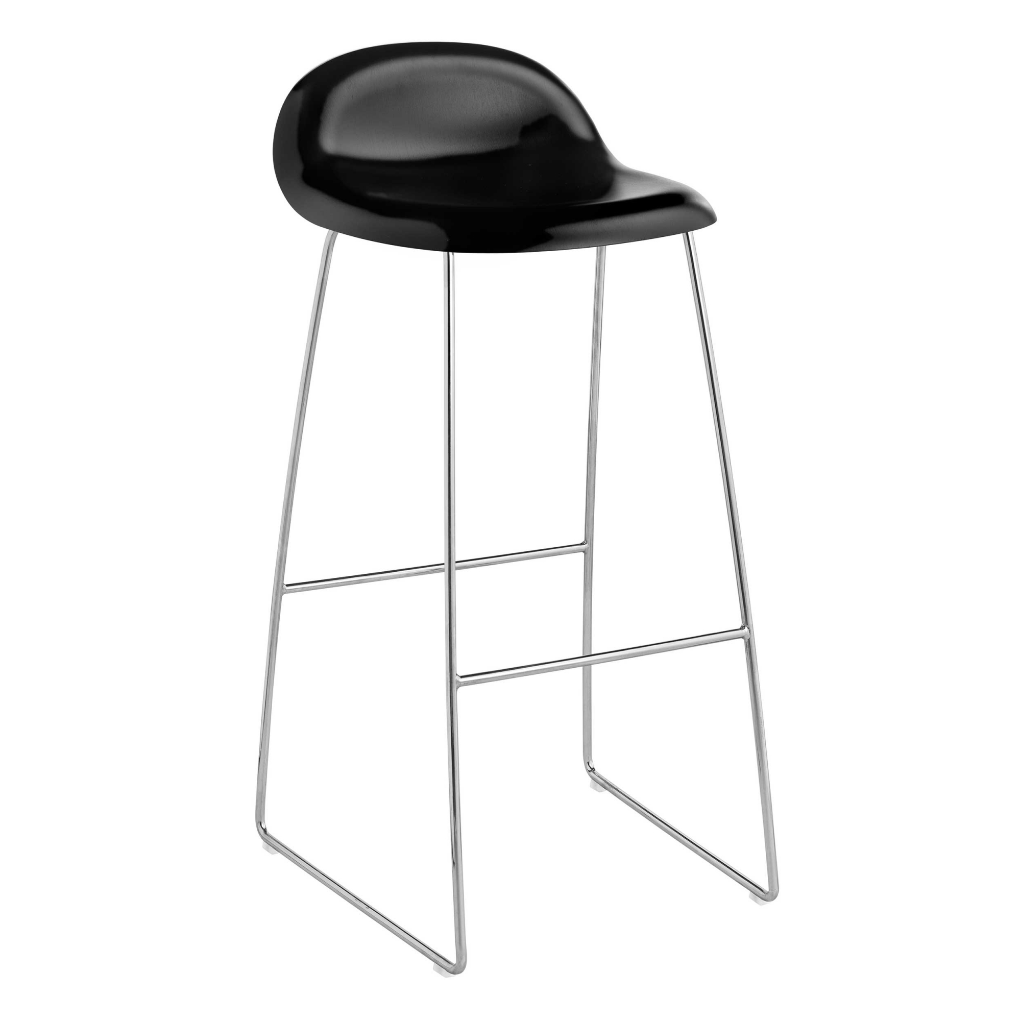 Gubi - 3D Bar Stool, Unupholstered, Chrome Sledge Base, Top - Black Stained Beech 75 cm - Barstolar - Träfärgad - Metall/Trä