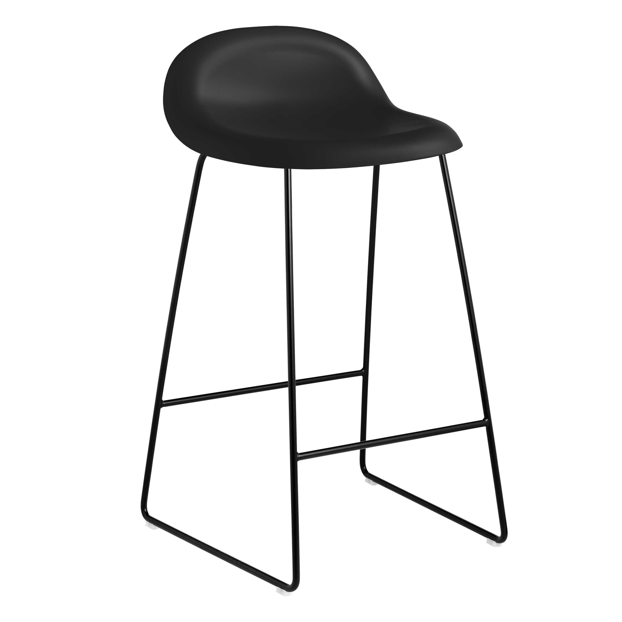 Gubi - 3D Counter Stool, Unupholstered, Black Sledge Base, Top - Midnight Black 65 cm - Barstolar - Svart - Metall/Plast
