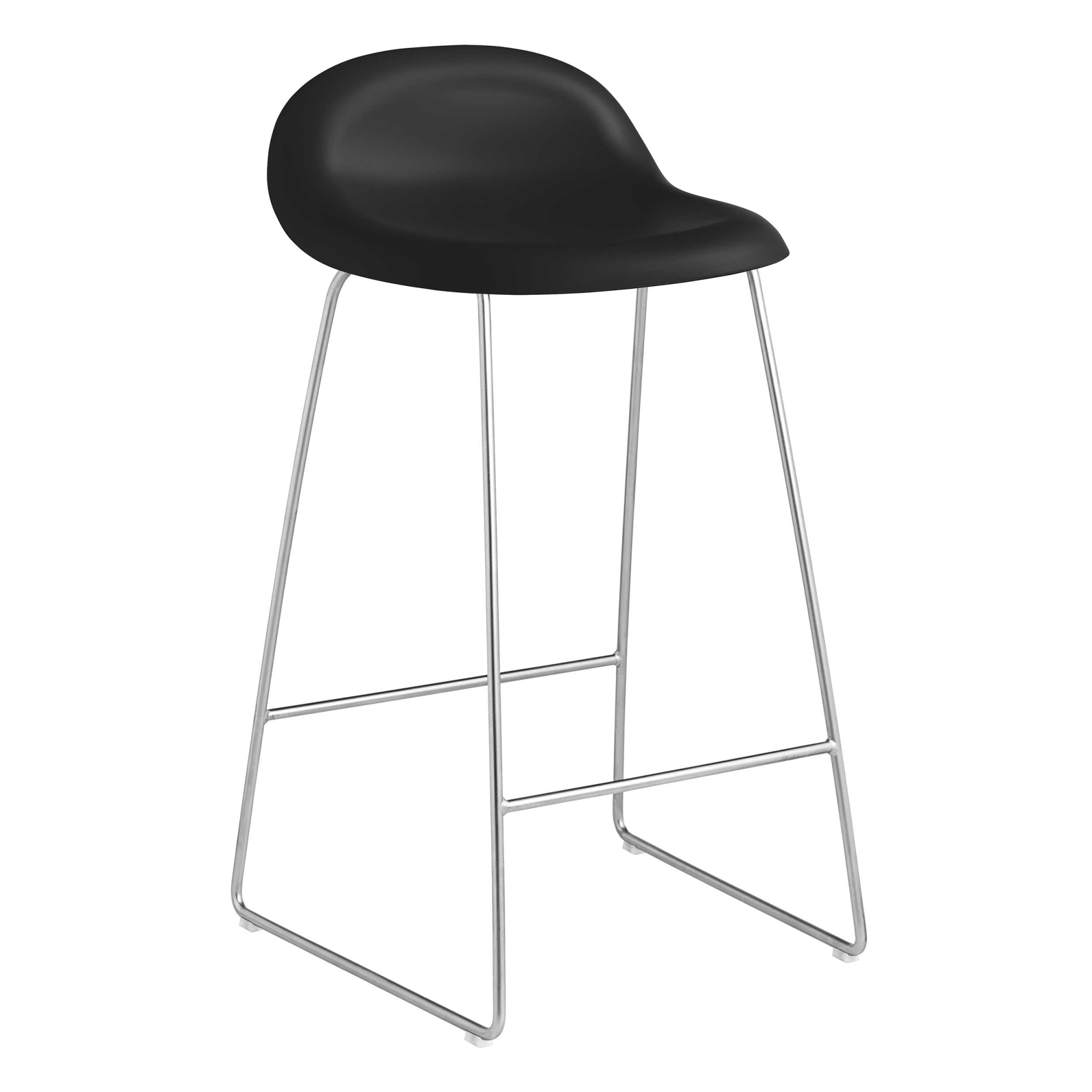 Gubi - 3D Counter Stool, Unupholstered, Chrome Sledge Base, Top - Midnight Black 65 cm - Barstolar - Svart - Metall/Plast