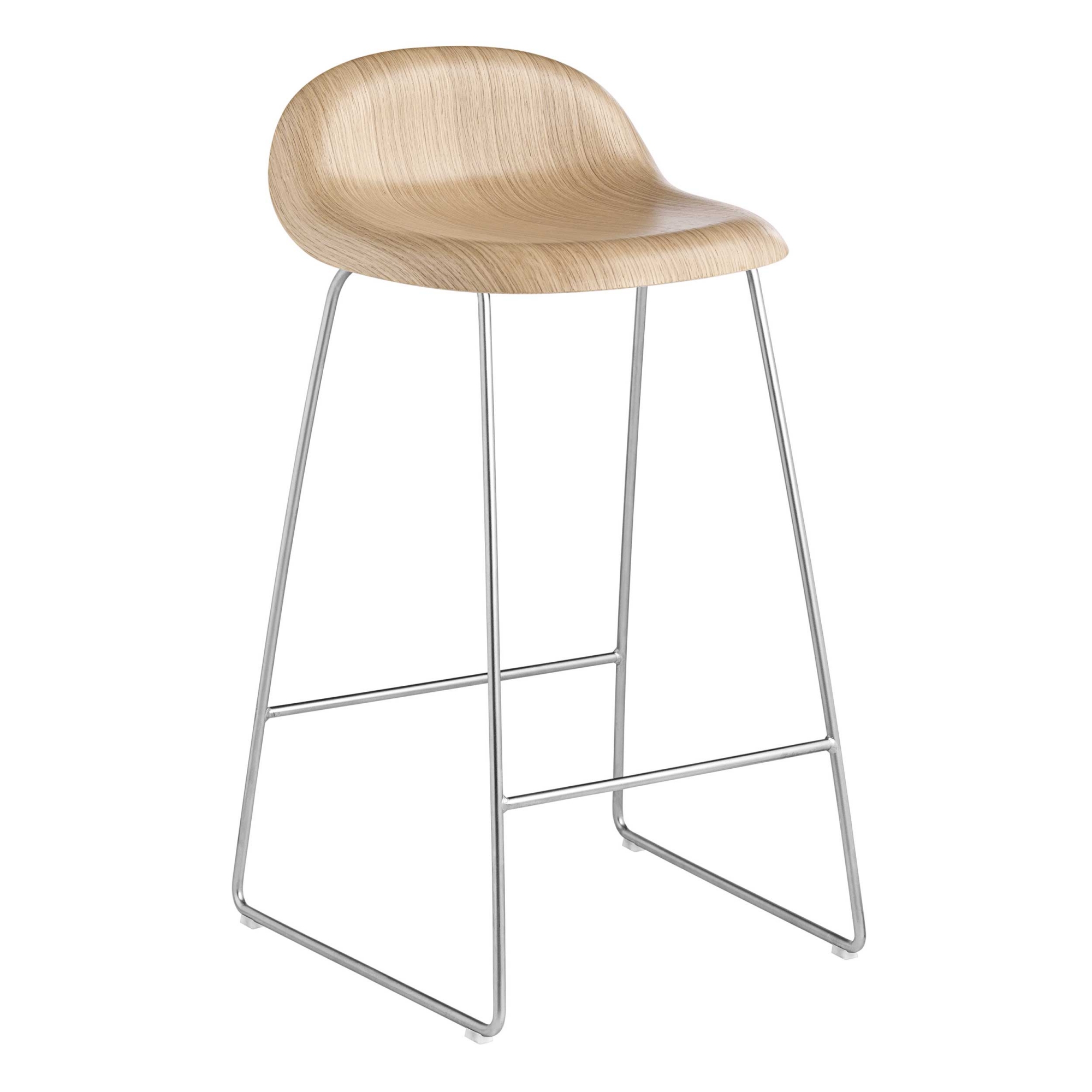 Gubi - 3D Counter Stool, Unupholstered, Chrome Sledge Base, Top - Oak 65 cm - Barstolar - Träfärgad - Metall/Trä