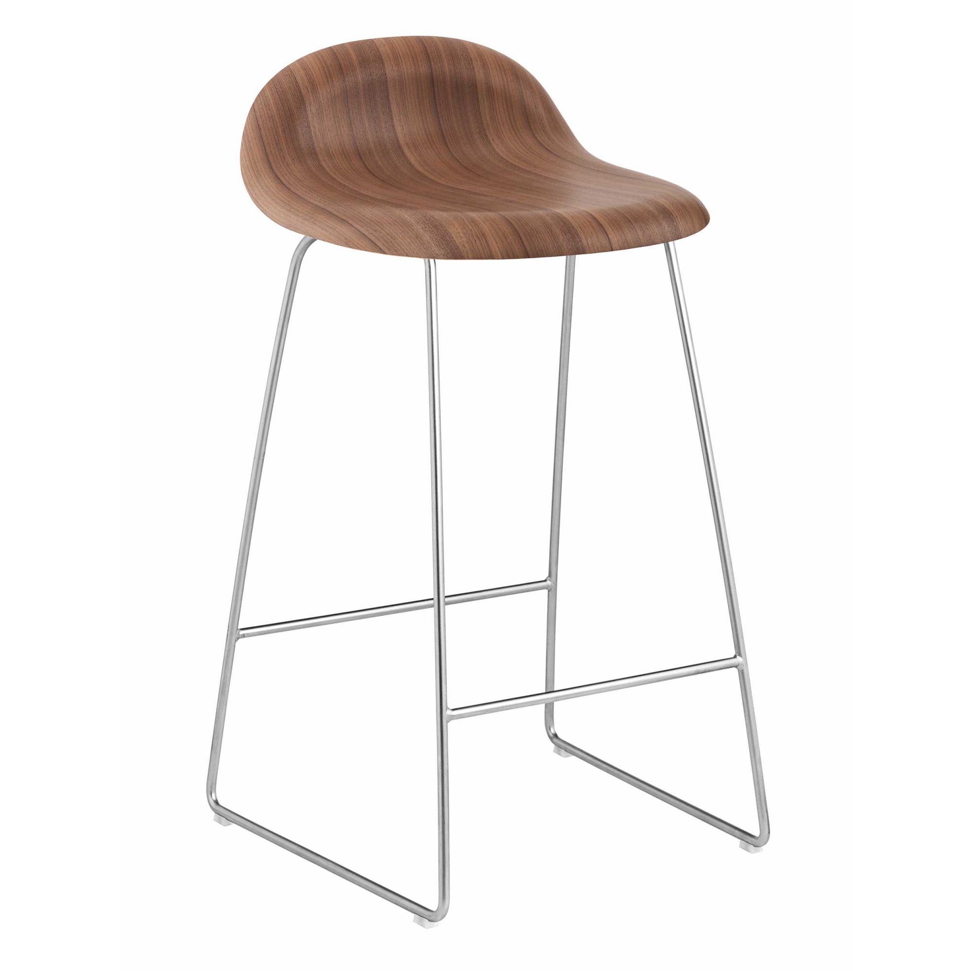 Gubi - 3D Counter Stool, Unupholstered, Chrome Sledge Base, Top - Walnut 65 cm - Barstolar - Träfärgad - Metall/Trä