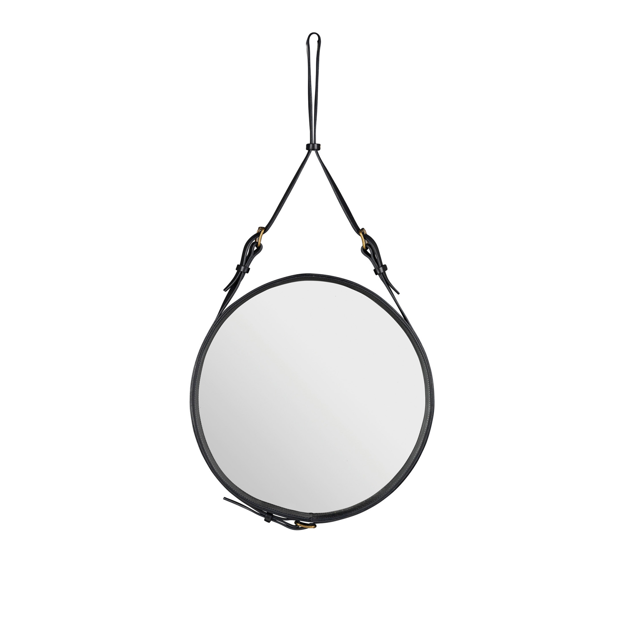 Gubi - Adnet Circulaire Spegel, Ø 45 cm, Läder: Svart - Väggspeglar - Jacques Adnet - Svart