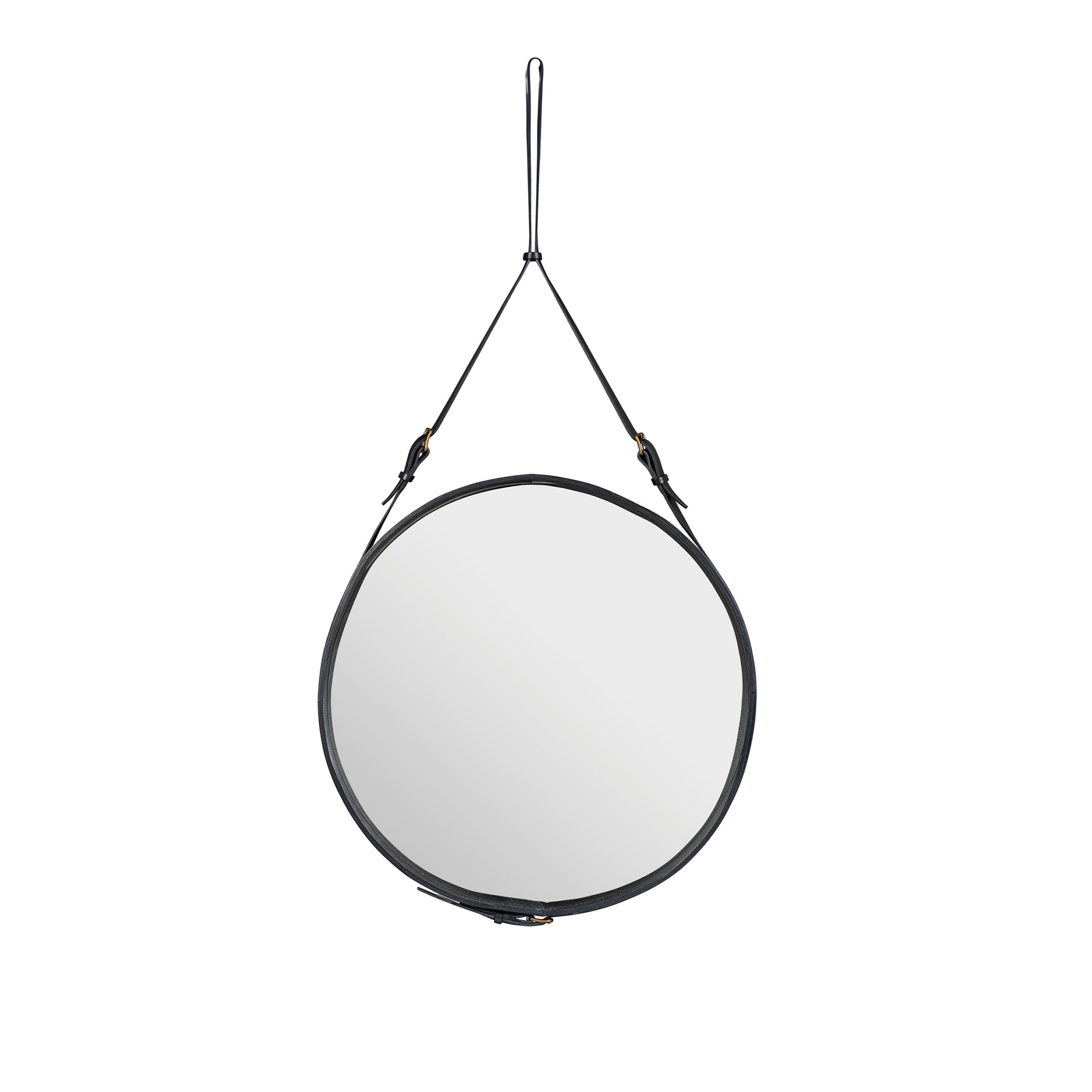 Gubi - Adnet Circulaire Spegel, Ø 58 cm, Läder: Svart - Väggspeglar - Jacques Adnet - Svart
