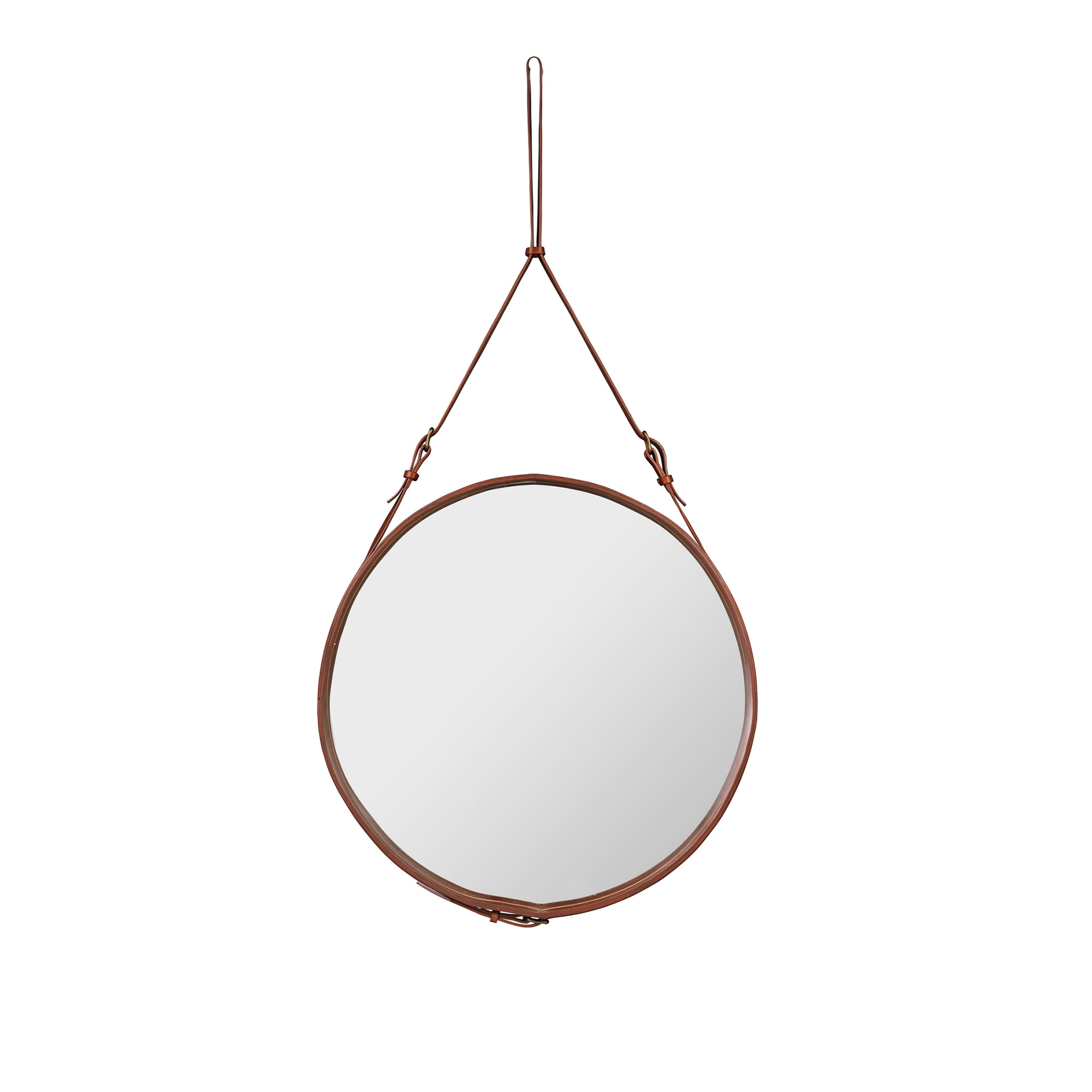 Gubi - Adnet Circulaire Spegel, Ø 70 cm, Läder: Brun - Väggspeglar - Jacques Adnet - Brun