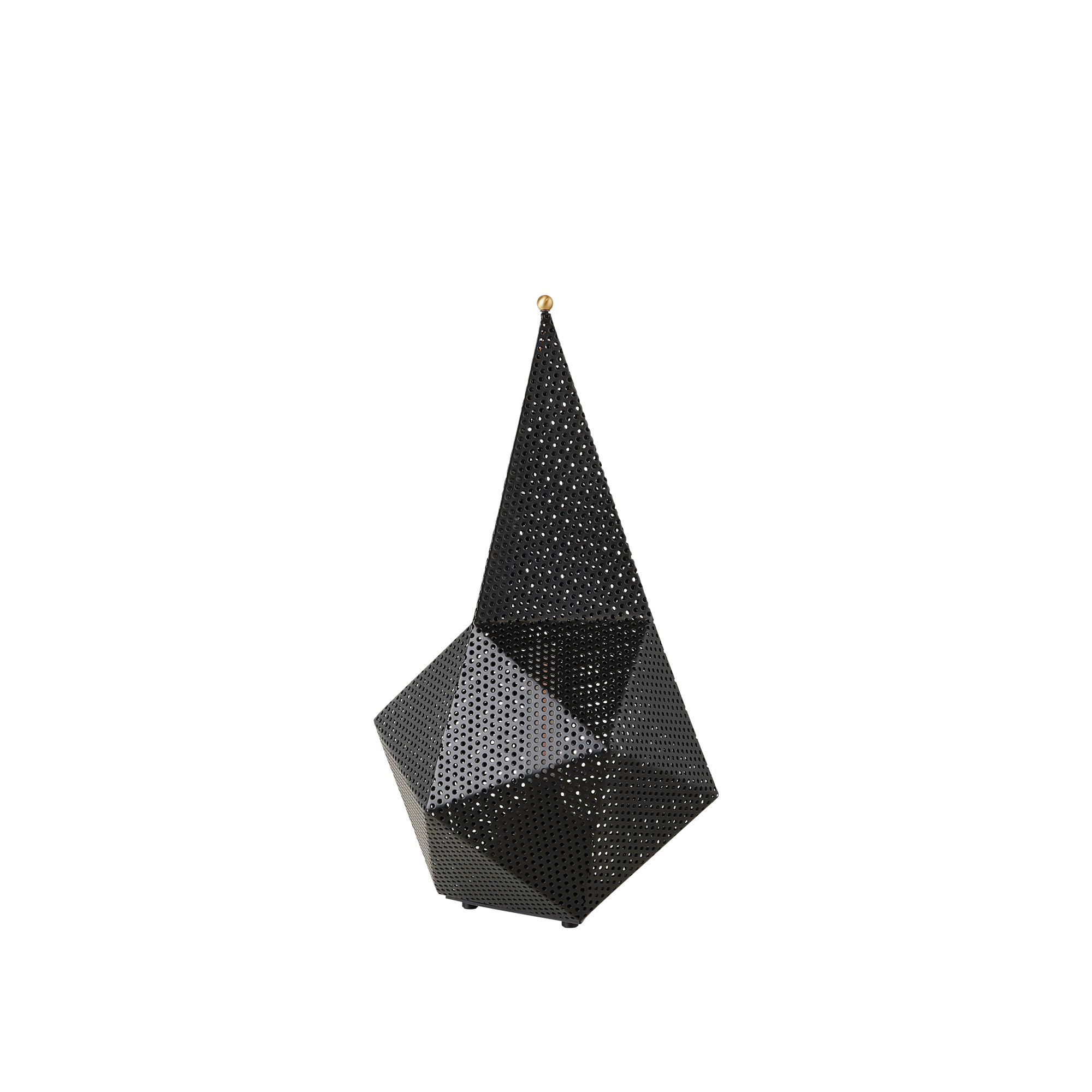 Bagdad-lampan, formgiven 1954 av Mathieu Matégot för Gubi, kännetecknas av sin kubistiska design och användning av perforerad metall. Den skulpturala formen med sin unika svans har bevarat sin karaktär genom åren. Den nya versionen är hälften så stor som originalet och är nu portabel. Lampan har en touch-aktiverad dimmer med tre ljuslägen, vilket gör den flexibel för olika behov. Kombinationen av design och funktion gör den lämplig för både moderna och klassiska miljöer.