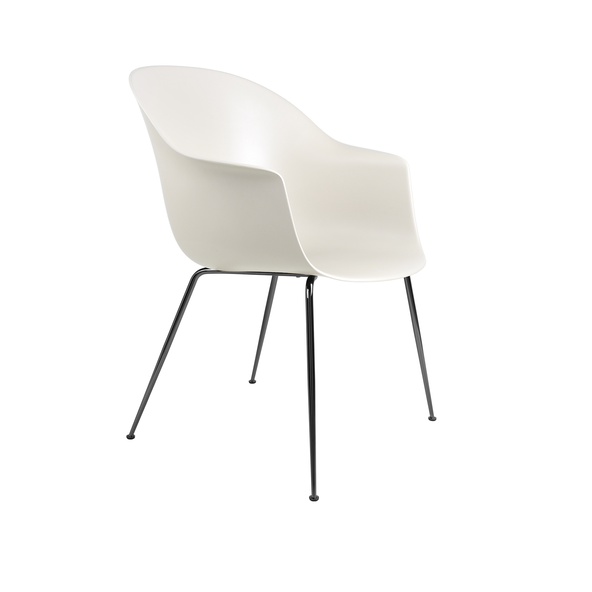 Gubi - Bat Dining Chair, Un-upholstered, Conic Black Chrome, Alabaster White - Matstolar - GamFratesi - Vit - Metall/Plast