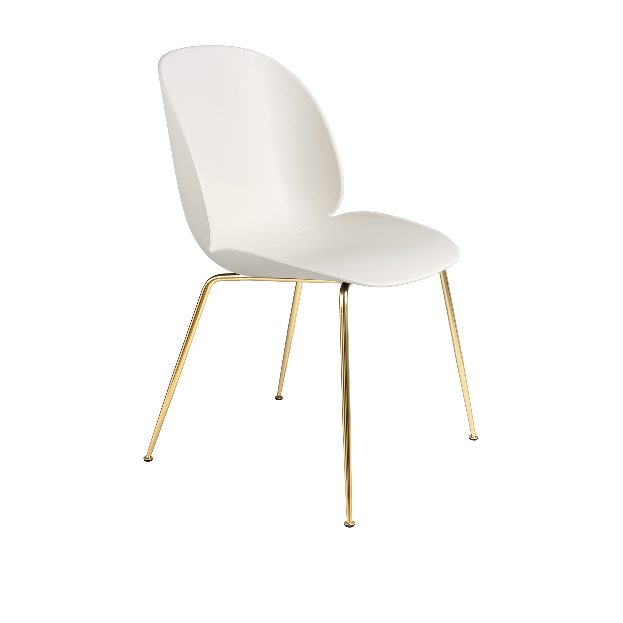 Gubi - Beetle Dining Chair Un-upholstered, Conic Base, Brass Conic, Shell Alabaster White - Matstolar - GamFratesi - Vit - Metall/Plast
