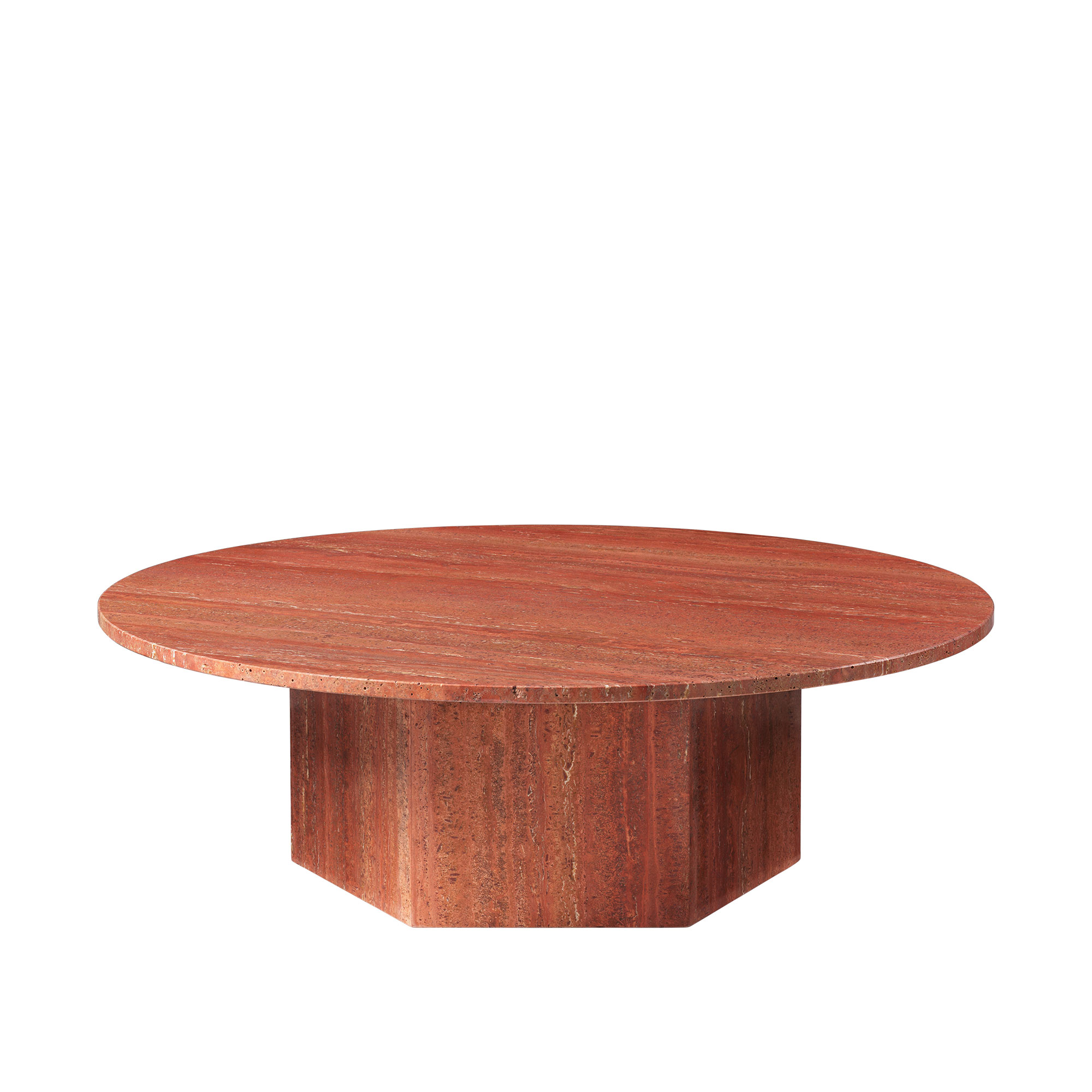 Gubi - Epic Coffee Table, Round Ø110, Red Travertine Stone - Soffbord - GamFratesi - Röd - Sten