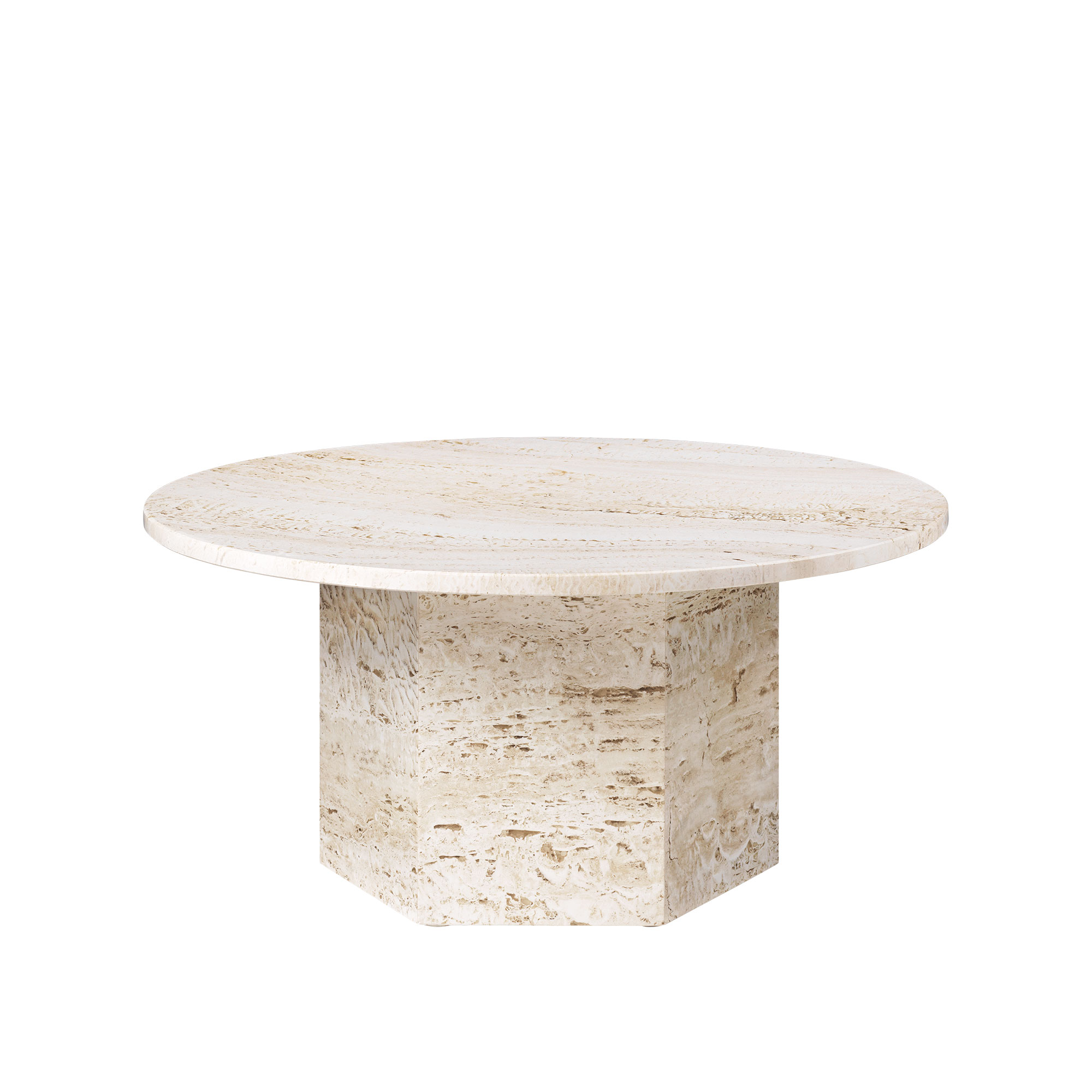 Gubi - Epic Coffee Table, Round Ø80, White Travertine Stone - Soffbord - GamFratesi - Vit - Sten