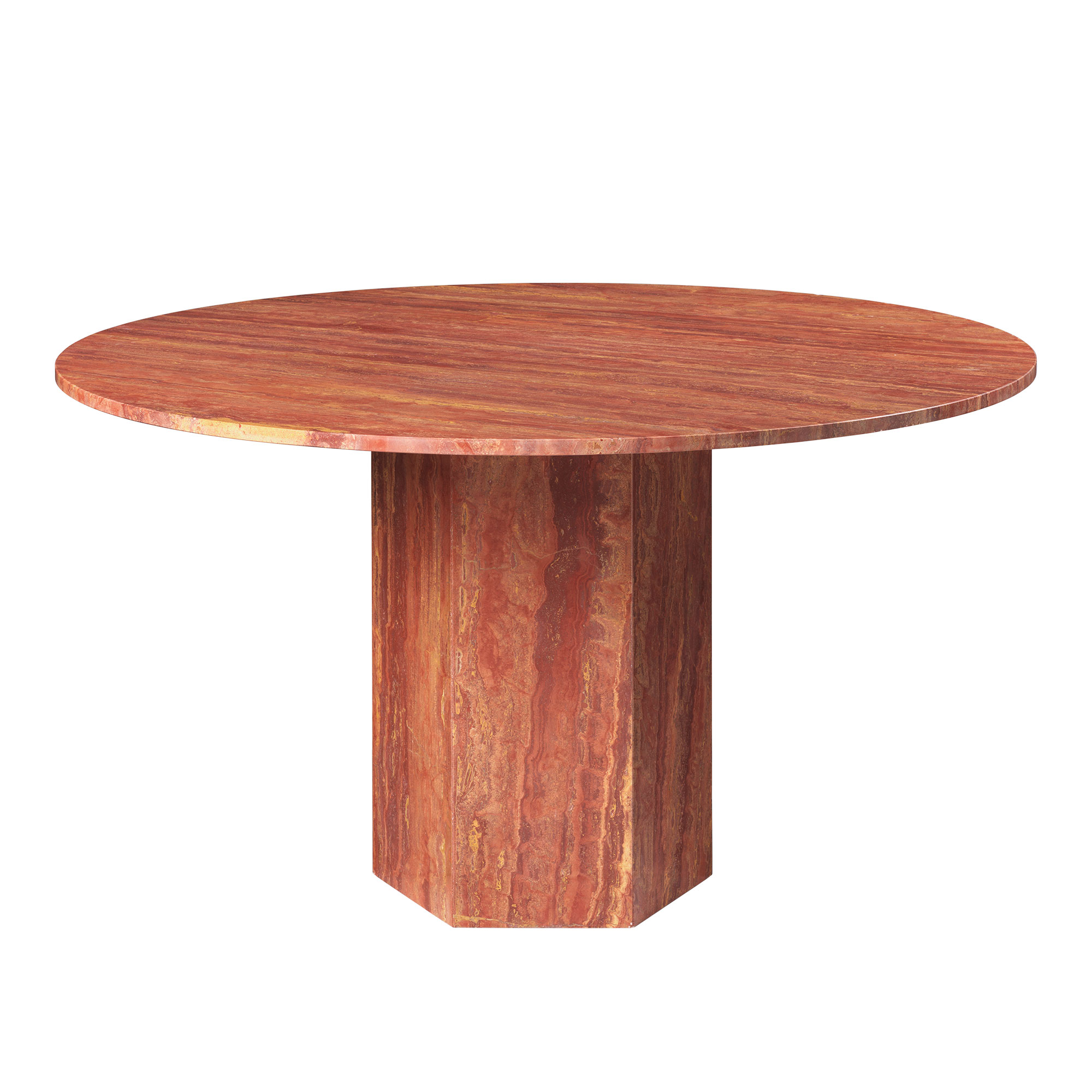 Gubi - Epic Dining Table, Round Ø130, Red Travertine Stone - Matbord - GamFratesi - Röd - Sten