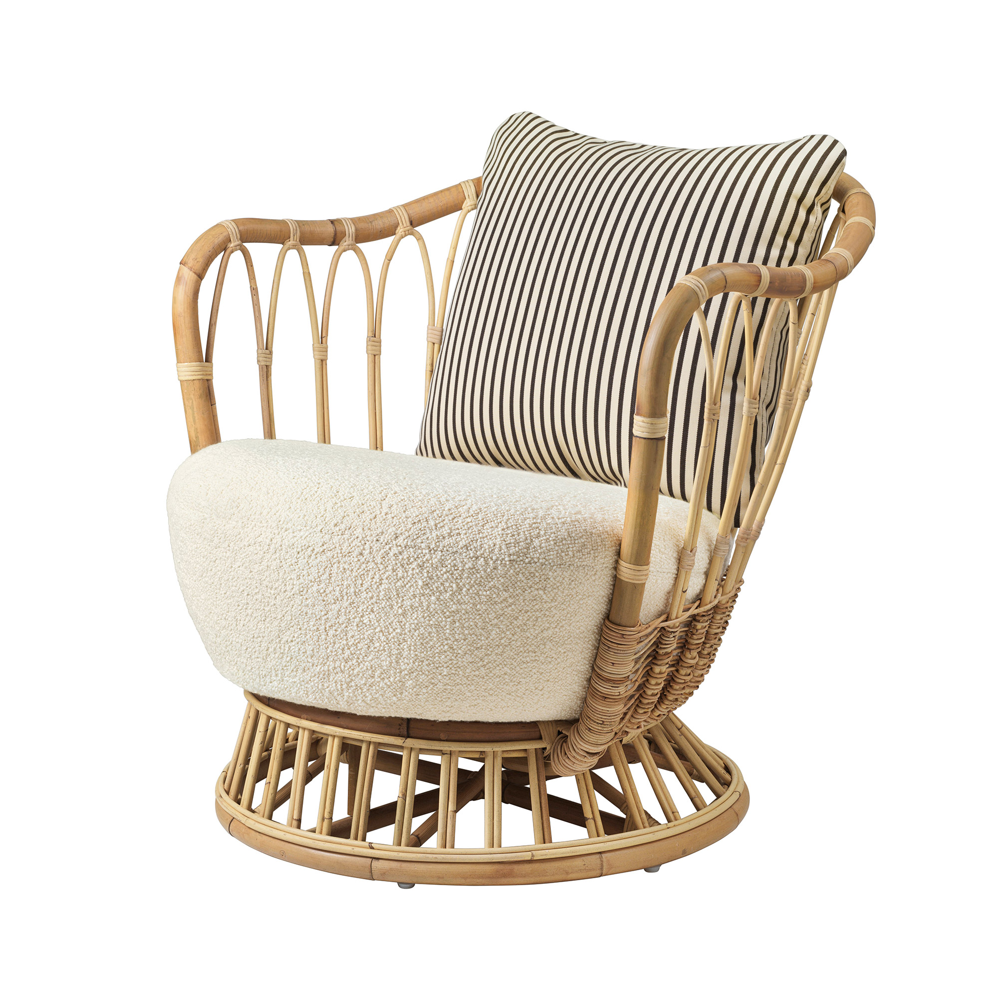 Grace Lounge Chair, som återintroduceras av Gubi, är ett verk av Tove Kindt-Larsen från 1936. Denna fåtölj är resultatet av Kindt-Larsens inspiration från naturens egna linjer och organiska material, vilket återspeglas i dess design. Varje exemplar av denna fåtölj är unikt tack vare den handgjorda stommen i rotting, som först ångbehandlas för att bli mer formbar. Därefter vävs rottingen noggrant och spänns för att härda i sin form. Denna teknik utförs av hantverkare med djupgående kunskap och lång erfarenhet, vilket bidrar till dess unika karaktär. Fåtöljen är utformad för optimal komfort, med en mjuk sittdyna och ett rymligt ryggstöd. Vi tillhandahåller dynan och ryggkudden i olika tygval. Om du önskar beställa ett tyg som inte finns tillgängligt på vår webbplats, tveka inte att kontakta vår kundservice.