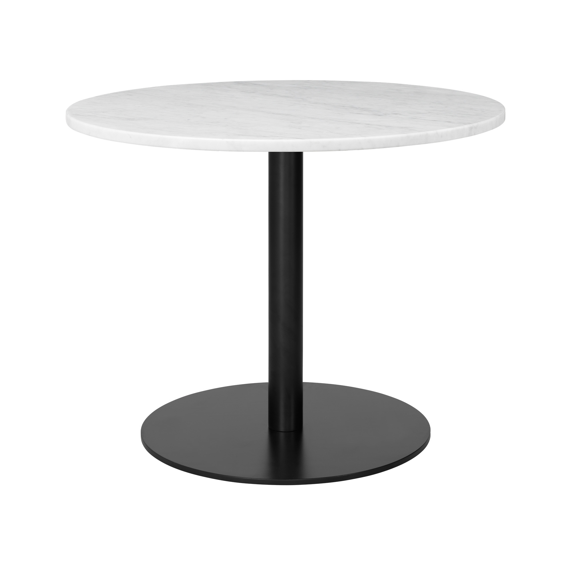Gubi - Gubi 1.0 Lounge Table, Round, Ø80, Black Base, Marble Top - Bianco Carrara - Soffbord - Vit - Metall/Sten