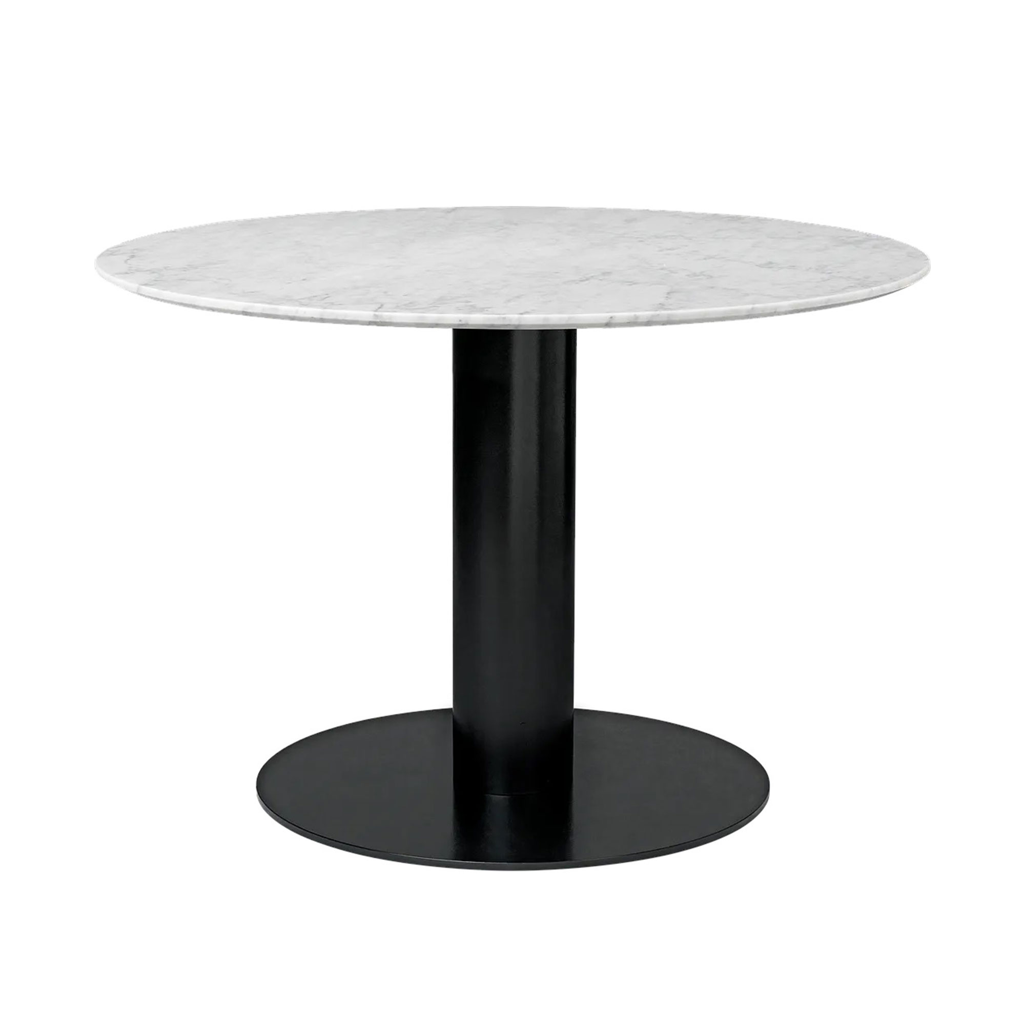 Gubi - GUBI 2.0 Dining Table, Ø 110 cm, Skiva: Marmor - Bianco Carrara, Bas: Svart - Matbord - Vit - Metall/Sten