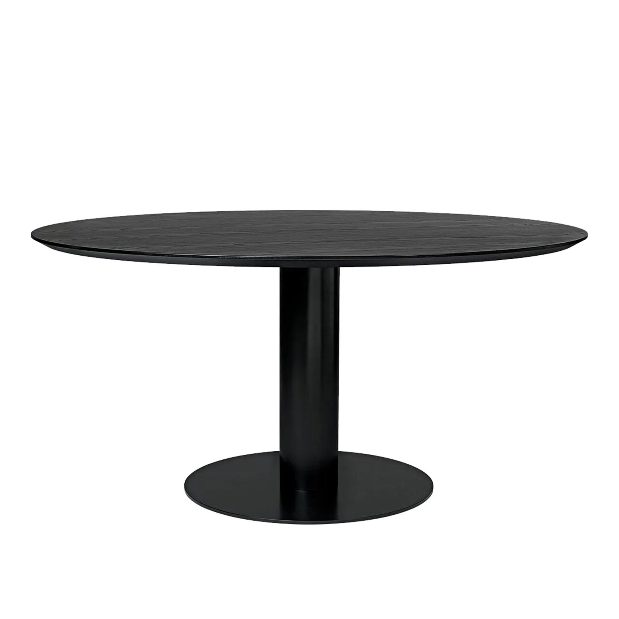 Gubi - GUBI 2.0 Dining Table, Ø 150 cm, Skiva: Trä - Svartbetsad ask, Bas: Svart - Matbord - Svart - Metall/Trä
