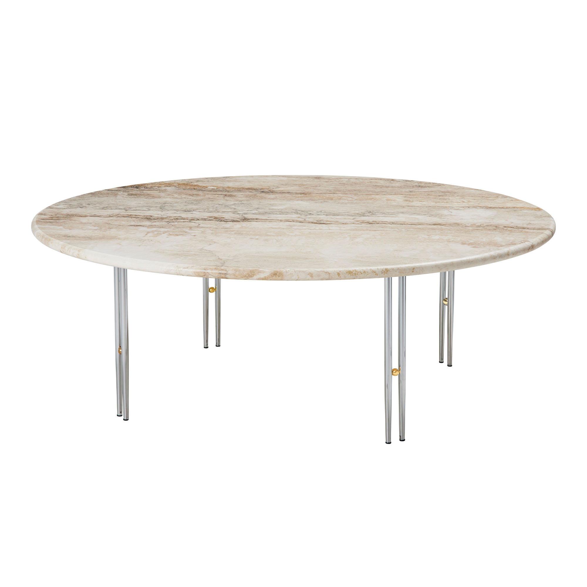 Gubi - IOI Coffee Table - Round, Ø100 Top Rippled Beige, Base Chrome Base / Brass Sphere - Småbord och sidobord utomhus - GamFratesi - Silver,Beige - Metall/Sten