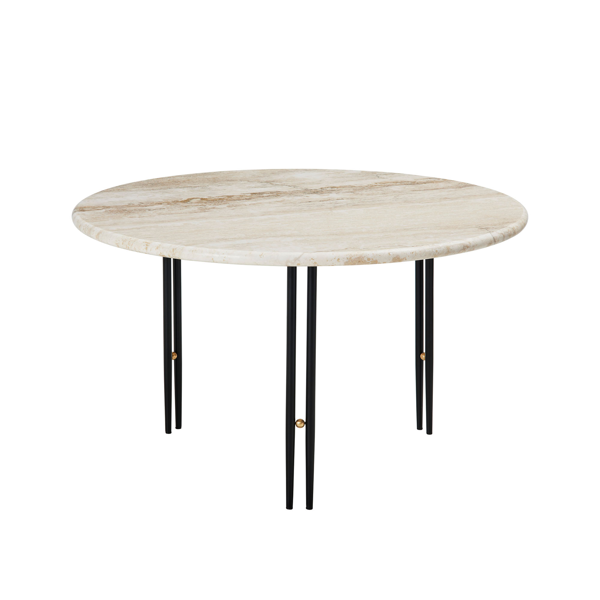 Gubi - IOI Coffee Table - Round, Ø70 Top Rippled Beige, Base Black Semi Matt Base / Brass Sphere - Soffbord - GamFratesi - Beige,Svart - Metall/Sten