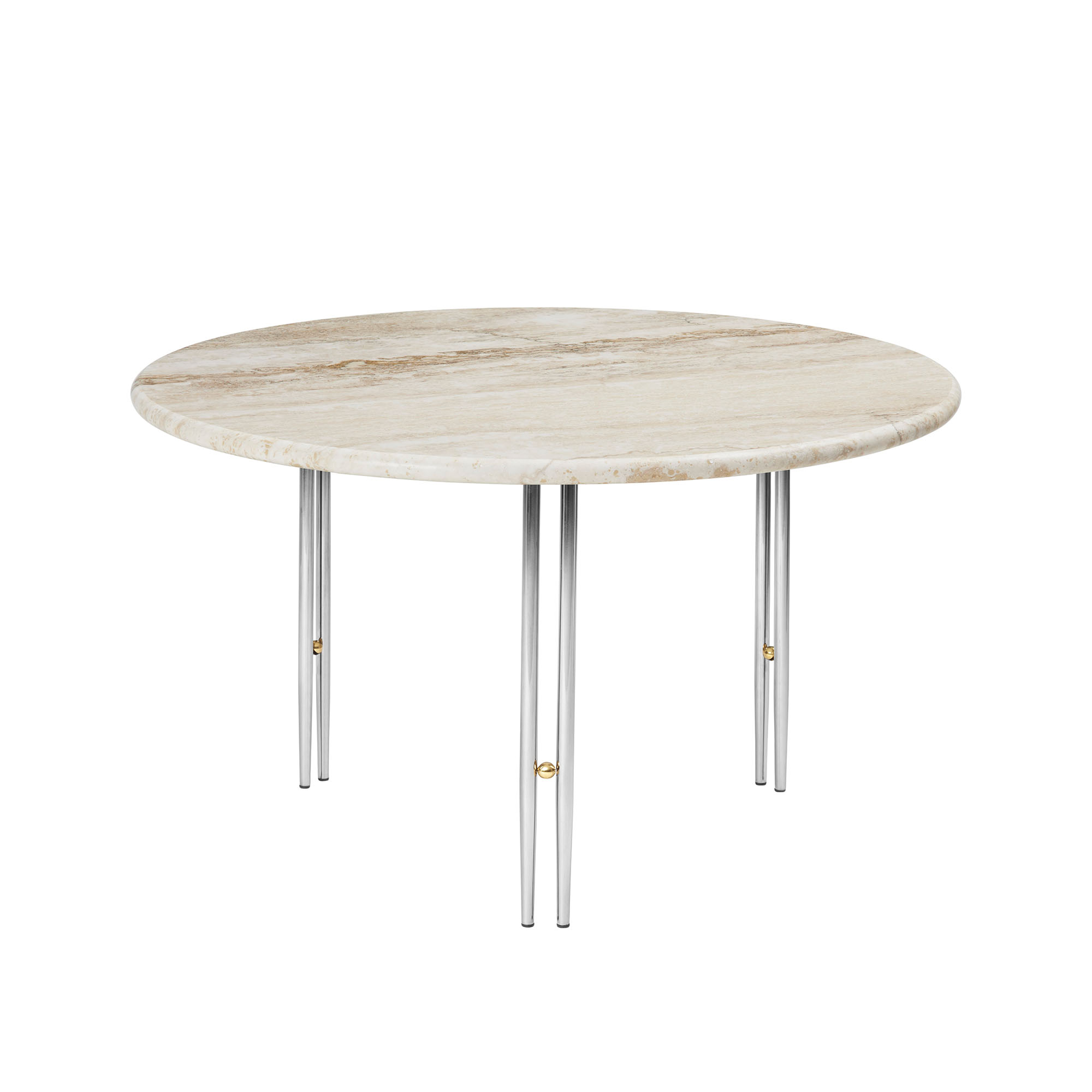 Gubi - IOI Coffee Table - Round, Ø70 Top Rippled Beige, Base Chrome Base / Brass Sphere - Småbord och sidobord utomhus - GamFratesi - Silver,Beige - Metall/Sten