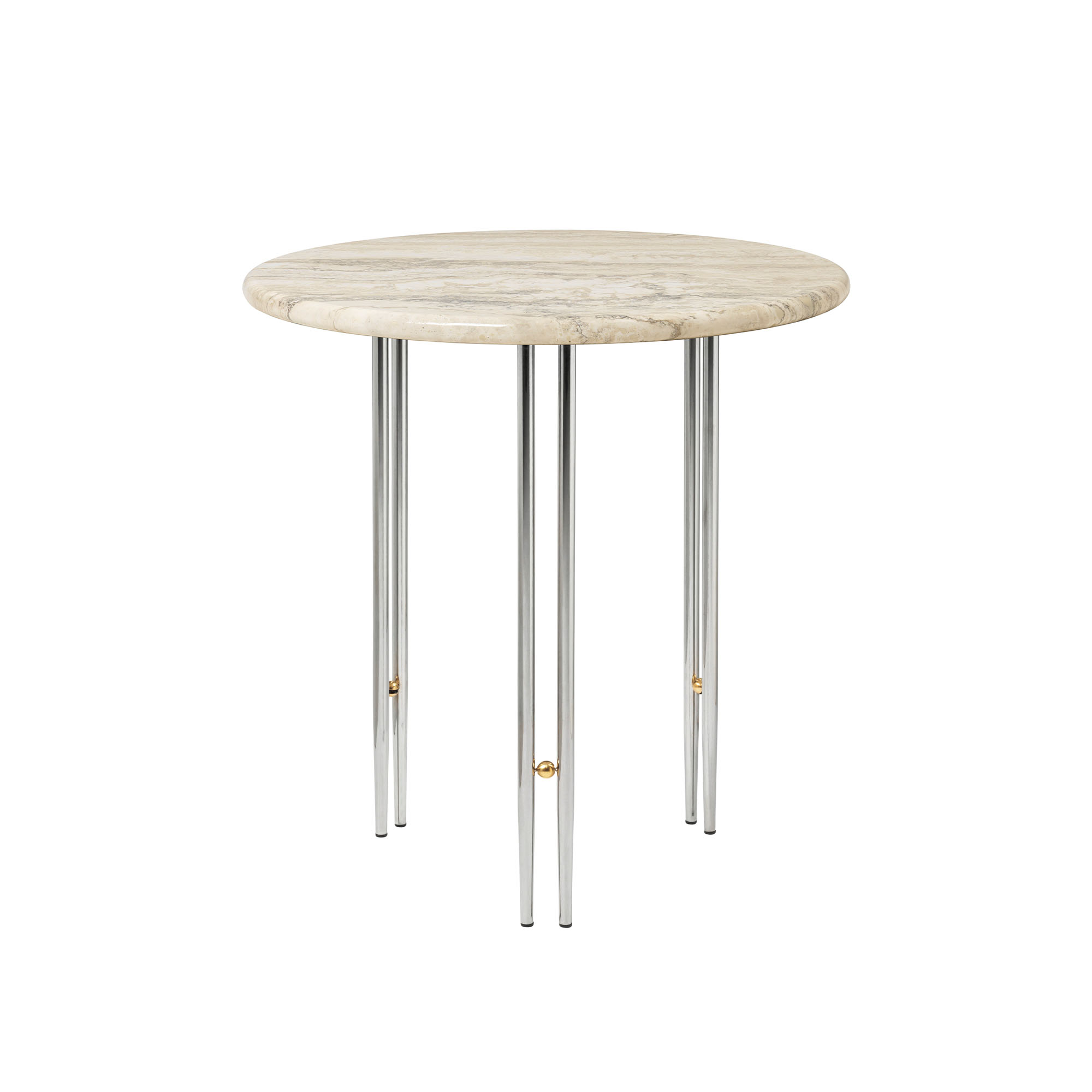 Gubi - IOI Side Table - Round, Ø50 Top Rippled Beige, Base Chrome Base / Brass Sphere - Sidobord - GamFratesi - Silver,Beige - Metall/Sten