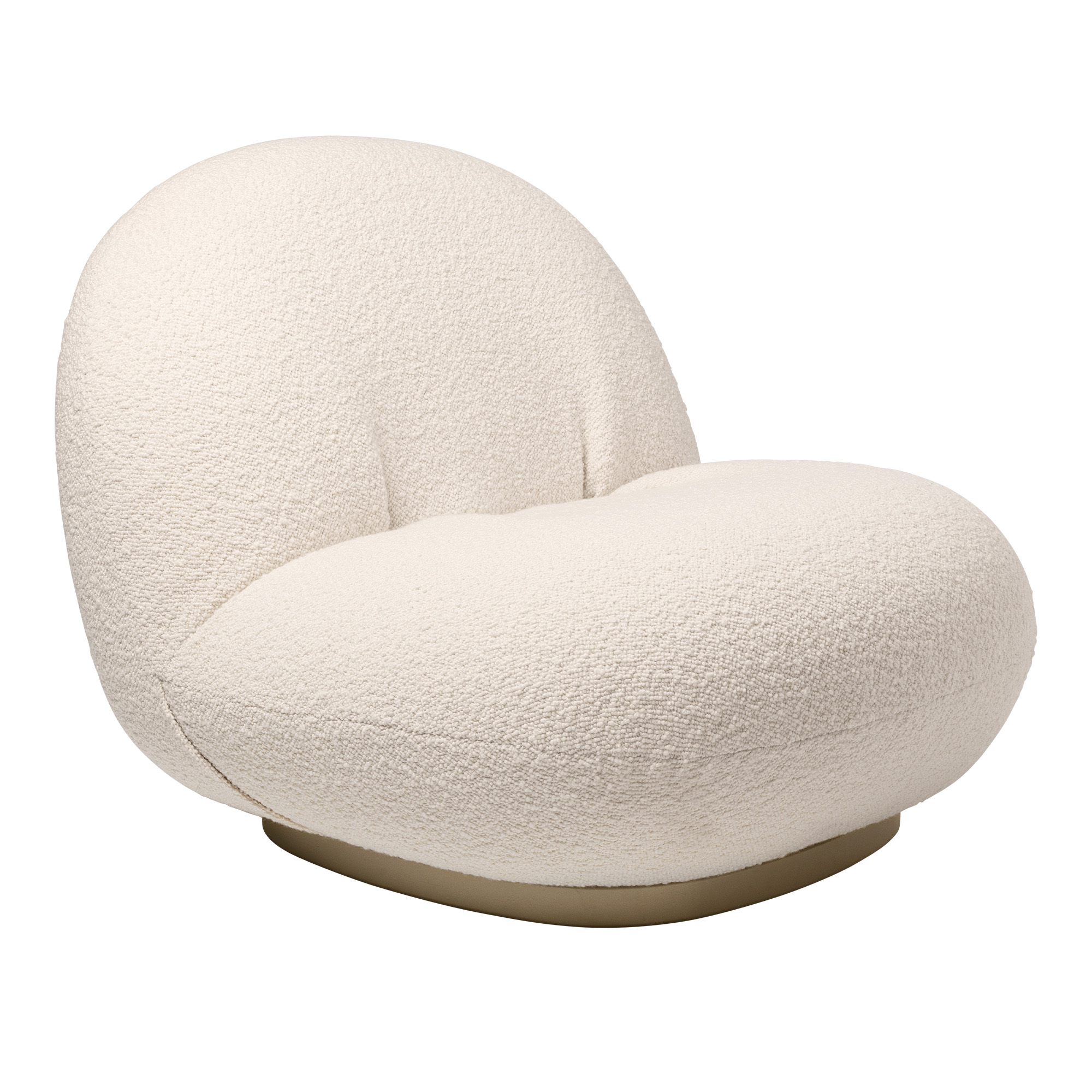 Gubi - Pacha Lounge Chair Fully Upholstered, Pearl Gold, Fabric Cat. 5 Dedar Karakorum 001 Ivory - Fåtöljer - Pierre Paulin - Vit - Metall/Textilmaterial