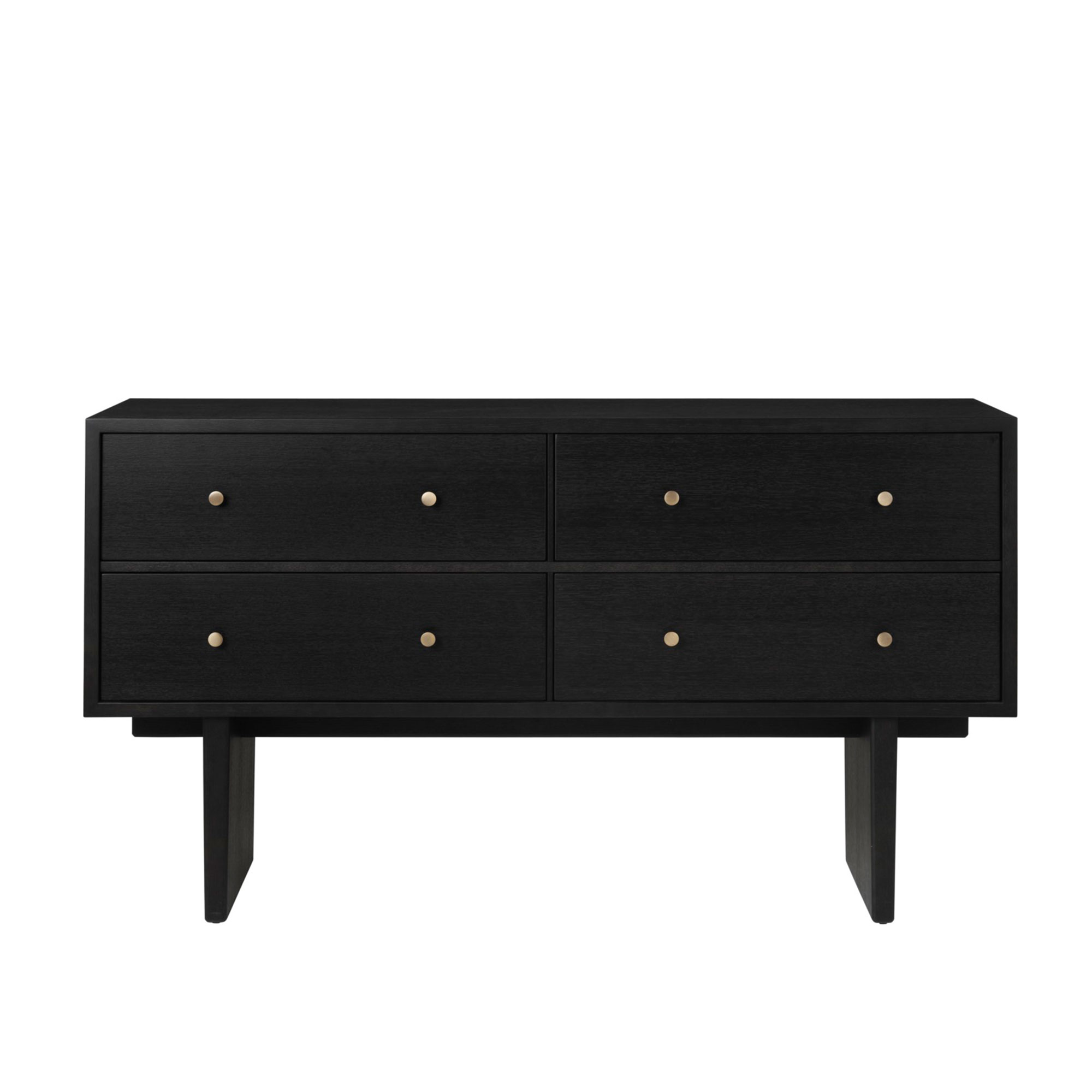 Private Sideboard formgiven av Space Copenhagen för det danska varumärket Gubi. Private Sideboard är utformad för att framkalla en klassisk och tidlös stil, med inspiration från antika japanska möbler. Dess välbalanserade och eleganta struktur förstärks av två vertikala ben som hålls samman av en horisontell balk. Den här utsökta möbeln är tillverkad av trä i olika utföranden och har fyra symmetriska mjukstängande lådor, som alla pryds av metallhandtag i antik mässingsfinish. Sideboardets användbarhet kompletteras med dess långa och smala form som kan användas för att arrangera en mängd olika föremål som konstverk eller prydnadsföremål. Den är gjord för att passa in nära väggarna och kan enkelt placeras i var som helst i ett hem. Private Sideboard kan också paras ihop för att öka förvaringen samtidigt som den bibehåller sitt estetiskt tilltalande utseende. Byggd med uppmärksamhet för detaljer kommer Private Sideboard att ditt hem stil med sin mångsidiga och funktionella design.