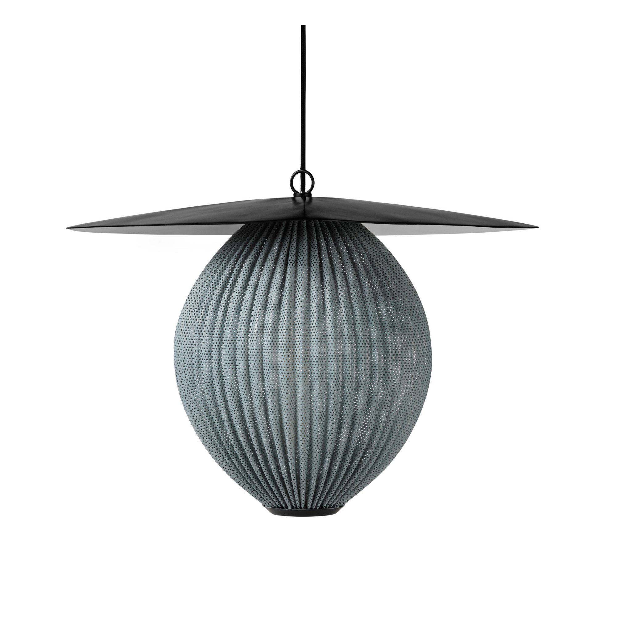 Satellite Pendant Lamp Large formgavs av Mathieu Matégot för danska Gubi. Ljuskällan sitter inne i en oval glob av perforerad metall och sprider därifrån ett behagligt ljus. Designen känns modern, trots att den formgavs redan på 50-talet, tack vare spelet mellan spännande material och former.
