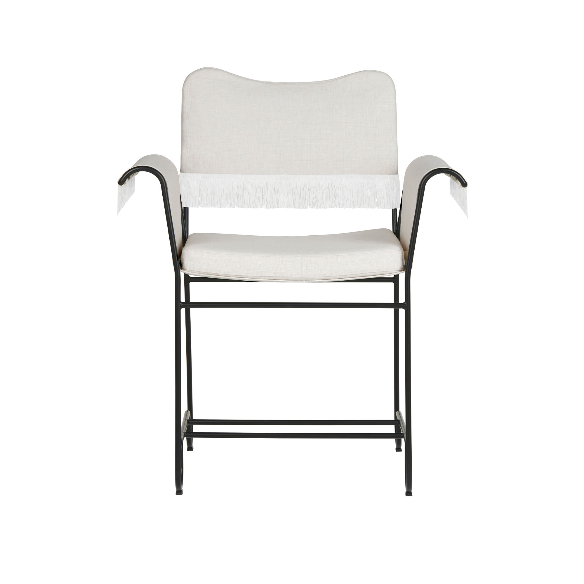 Gubi - Tropique Dining Chair - w. Fringes, Classic Black Base, Leslie, Limonta 06 - Matstolar utomhus - Mathieu Matégot - Vit - Textilmaterial