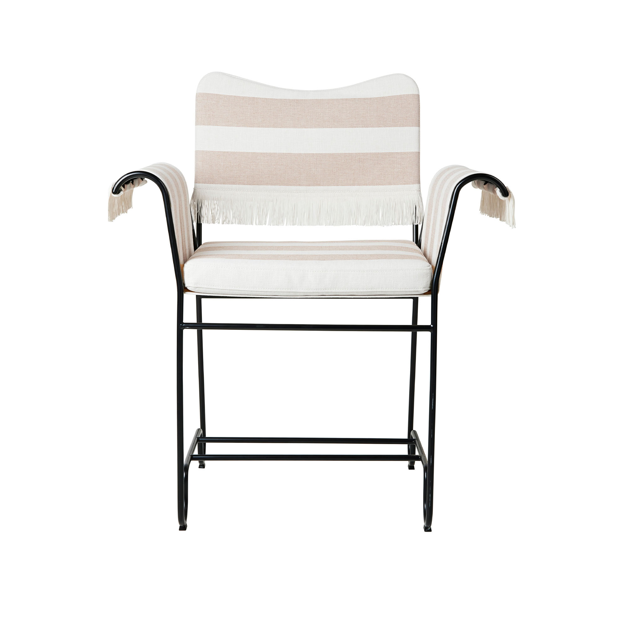 Gubi - Tropique Dining Chair - w. Fringes, Classic Black Base, Leslie Stripe, Limonta 40 - Matstolar utomhus - Mathieu Matégot - Beige,Vit - Textilmaterial
