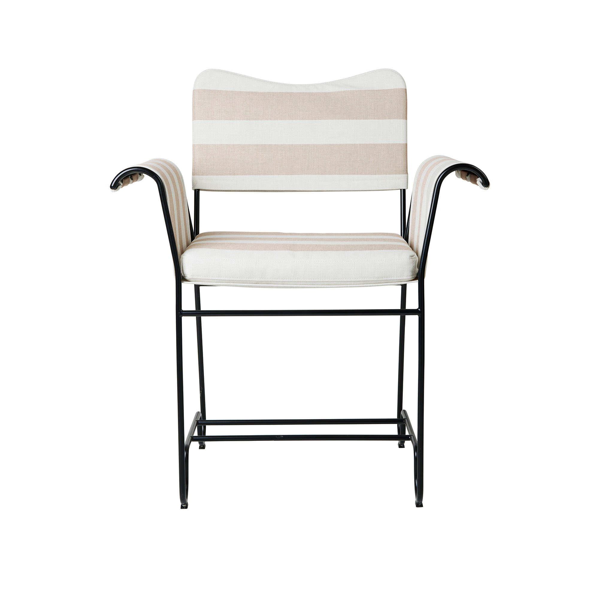 Gubi - Tropique Dining Chair - w/o Fringes Classic Black Base, Leslie Stripe, Limonta 40 - Matstolar utomhus - Mathieu Matégot - Beige,Vit - Textilmaterial