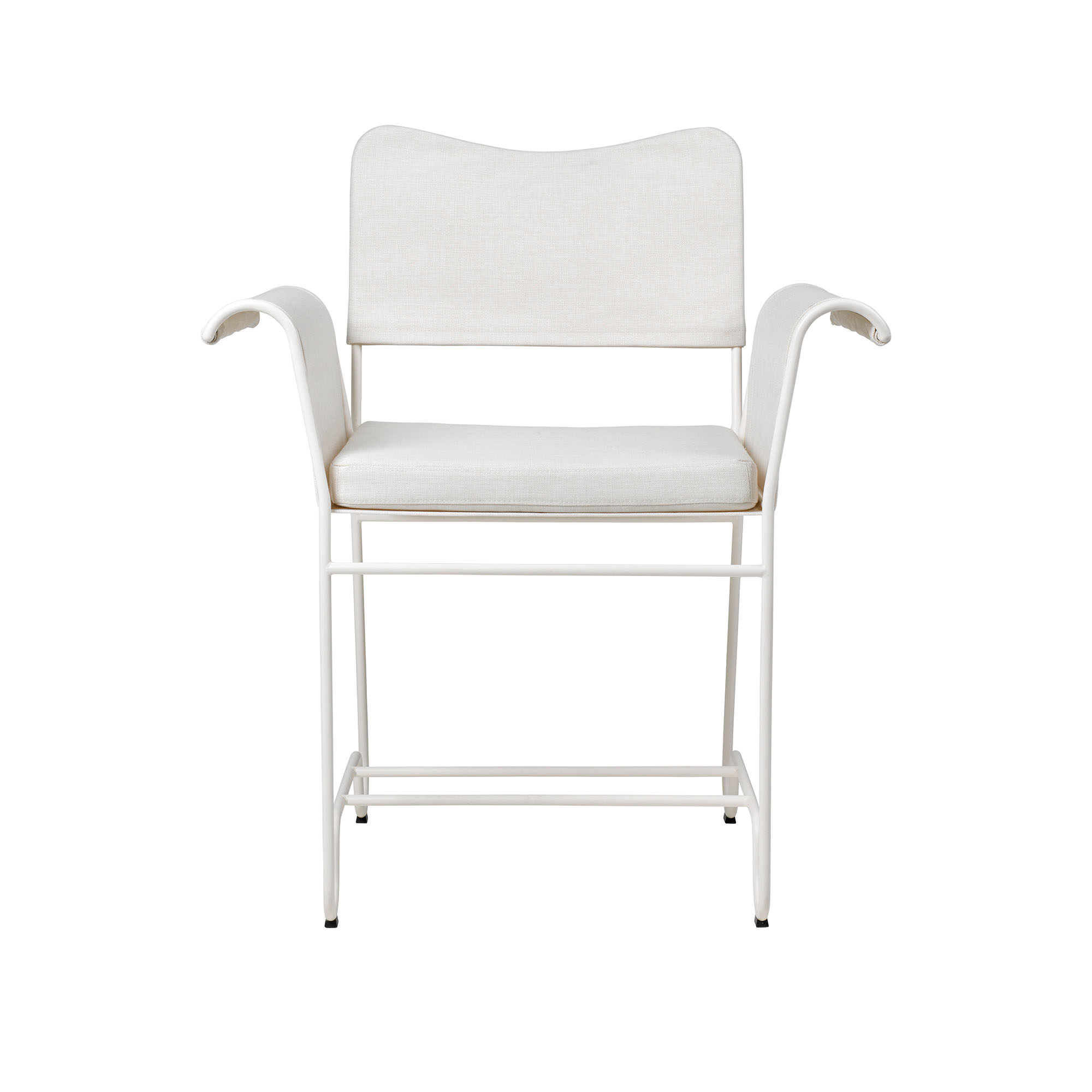 Tropique Dining Chair från Gubi, med en bas i Classic White Semi Matt, är en elegant matstol som kombinerar rostfritt stål och Matégots ikoniska kurvade fötter. Designen speglar Tropique-kollektionens kombination av enkelhet och dekadens, vilket gör stolen till ett iögonfallande inslag i både privata och kommersiella miljöer. Stolens tidlösa estetik och robusta konstruktion gör den till ett perfekt komplement till alla typer av inredningar.