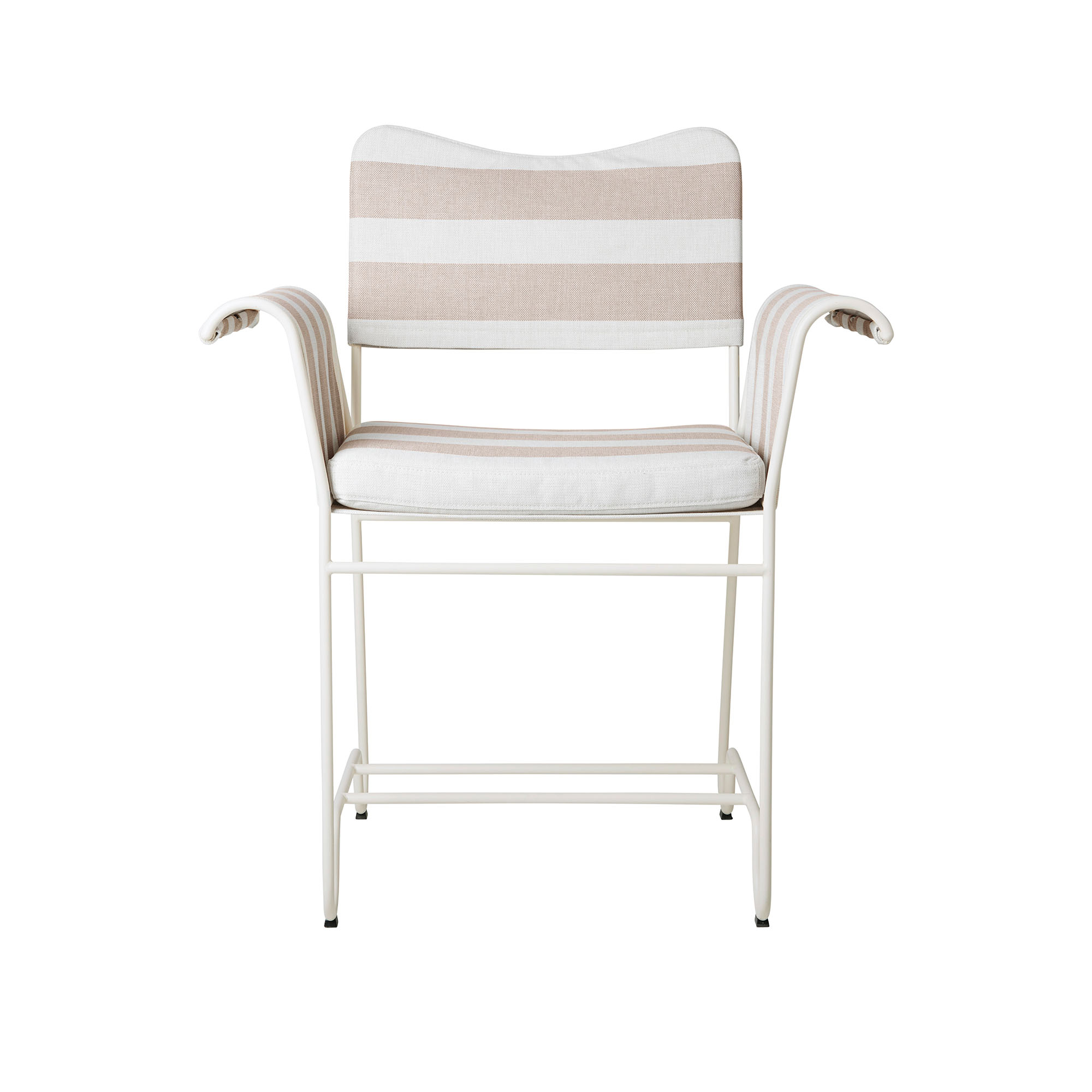 Gubi - Tropique Dining Chair - w/o Fringes Classic White Semi Matt Base, Leslie Stripe, Limonta 40 - Matstolar utomhus - Mathieu Matégot - Beige,Vit - Textilmaterial