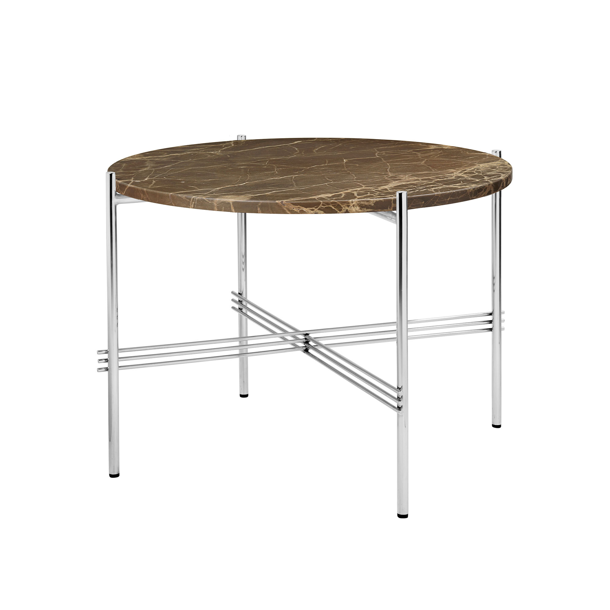 Gubi - TS Coffee Table - Round, Ø55 Polished Steel Base, Table Top Brown Emperador Marble - Sidobord - GamFratesi - Brun - Metall/Sten