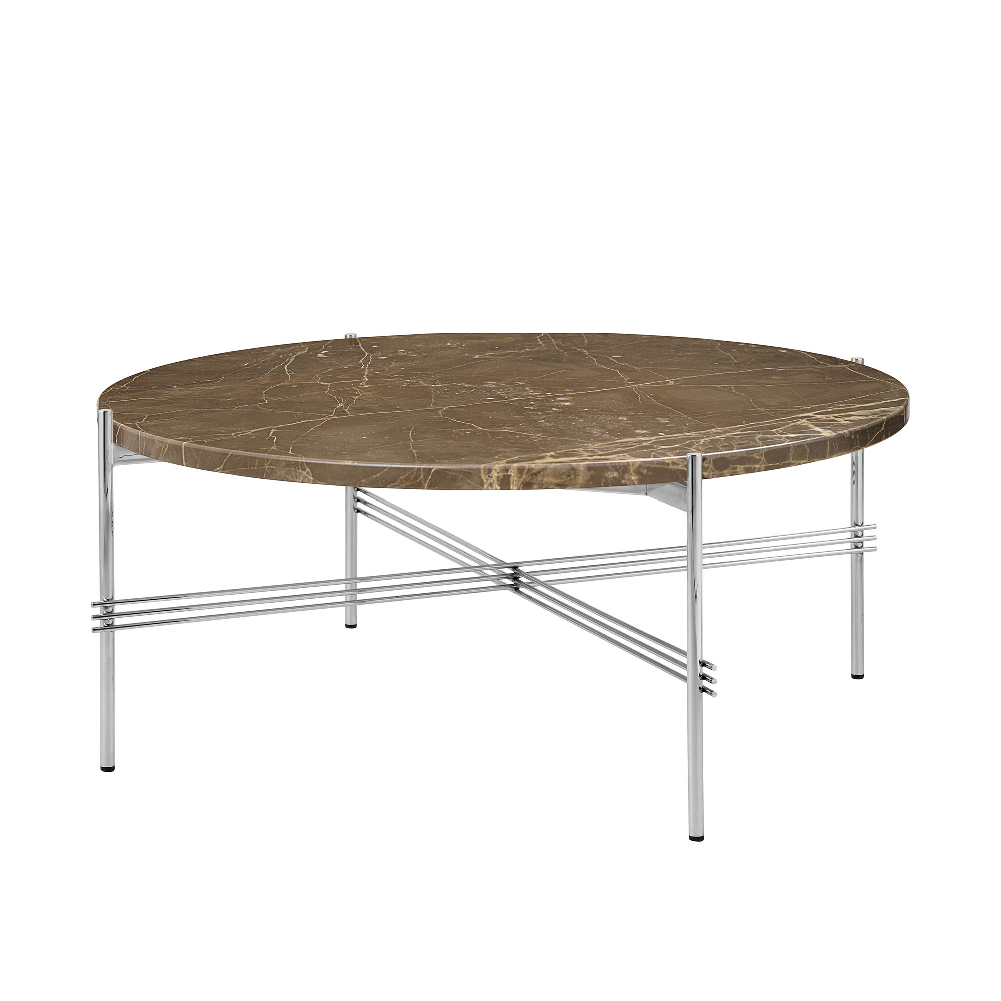 Gubi - TS Coffee Table - Round, Ø80 Polished Steel Base, Table Top Brown Emperador Marble - Sidobord - GamFratesi - Brun - Metall/Sten