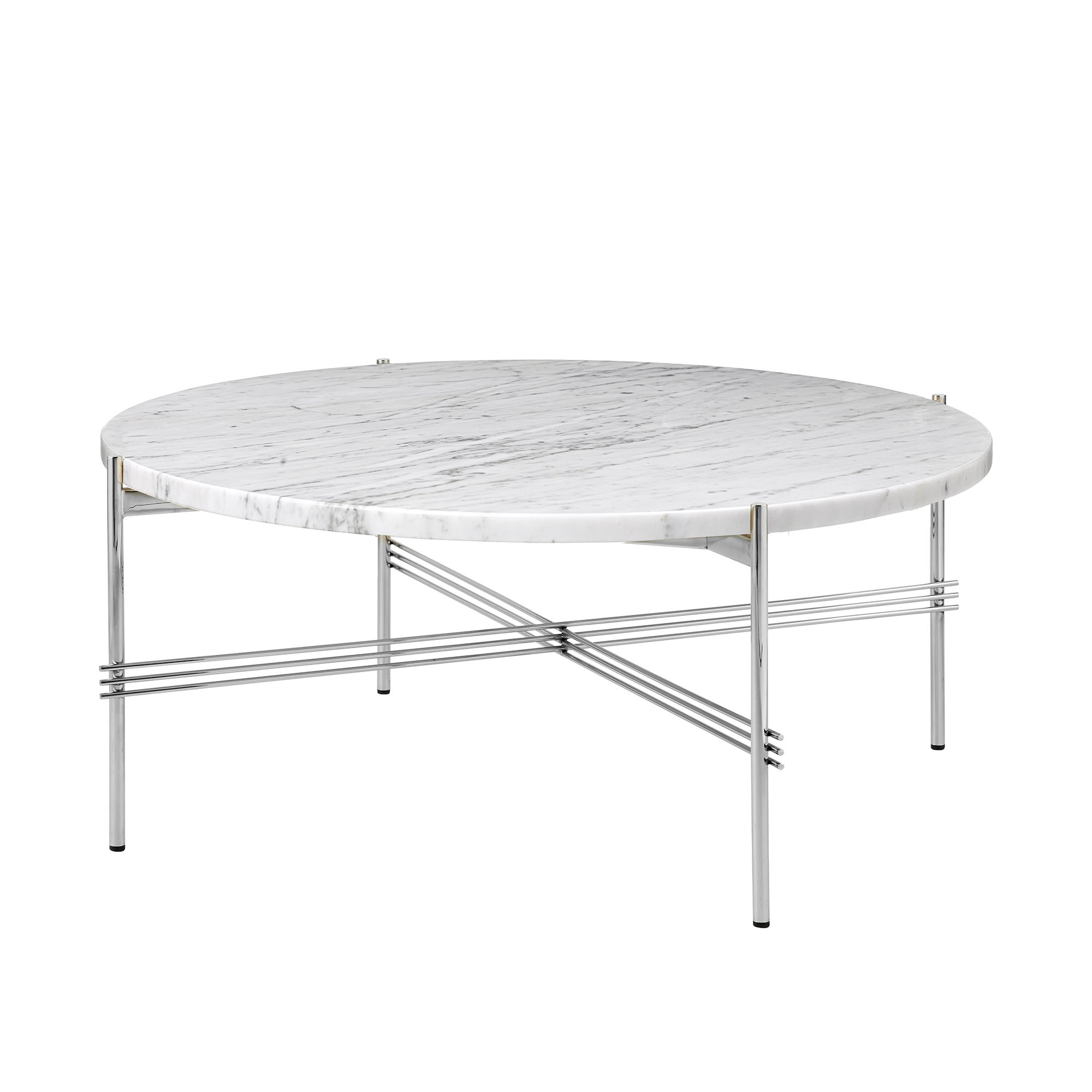 Gubi - TS Coffee Table - Round, Ø80 Polished Steel Base, Table Top White Carrara Marble - Sidobord - GamFratesi - Beige - Metall/Sten
