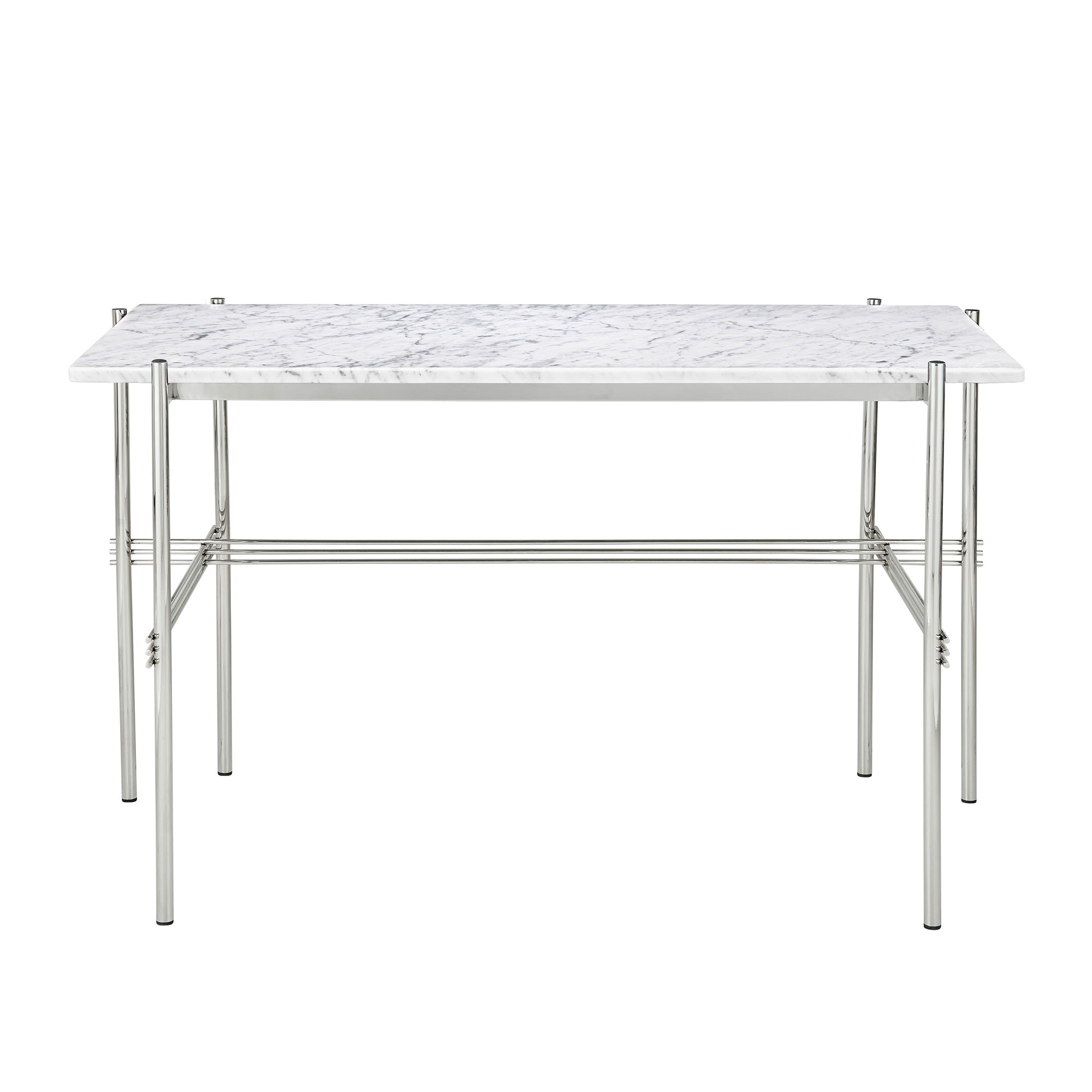 Gubi - TS Desk, 120x60 Polished Steel Base, Table Top White Carrara Marble - Skrivbord - GamFratesi - Beige - Metall/Sten
