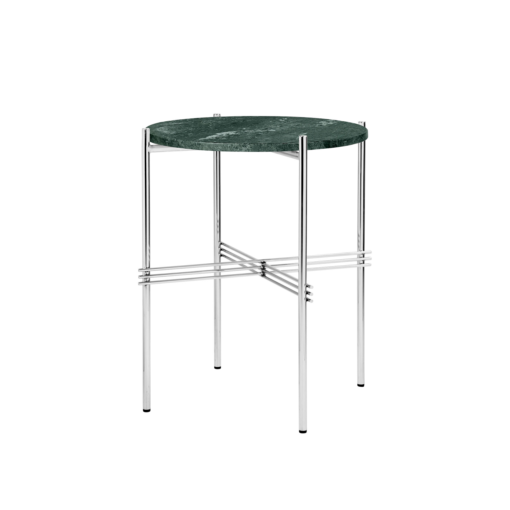 Gubi - TS Side Table - Round, Ø40 Polished Steel Base, Table Top Green Guatemala Marble - Småbord och sidobord utomhus - GamFratesi - Grön - Metall/Sten