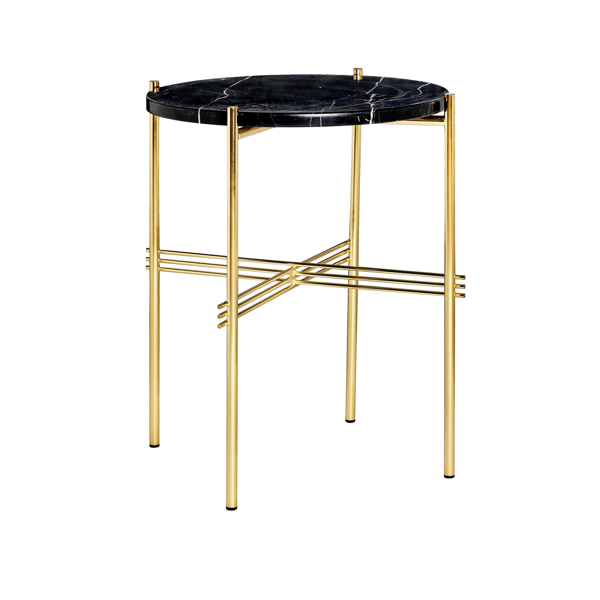 Gubi - TS Soffbord Ø 40 H. 51, Top: Nero Marquina Marble, Base: Brass - Soffbord - GamFratesi - Svart - Metall/Sten