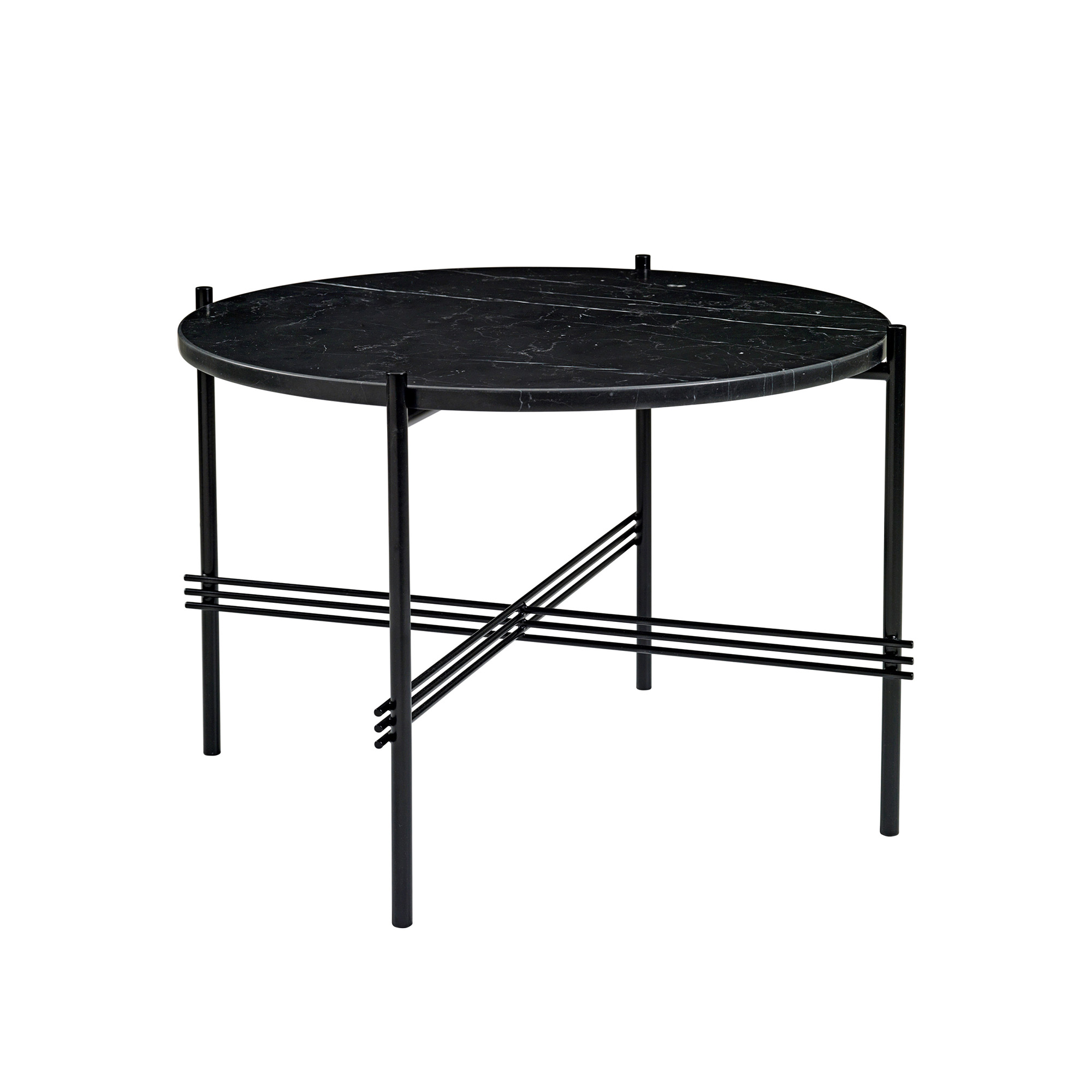 Gubi - TS Soffbord Ø 55 H. 41, Top: Nero Marquina Marble, Base: Black - Soffbord - GamFratesi - Svart - Metall/Sten
