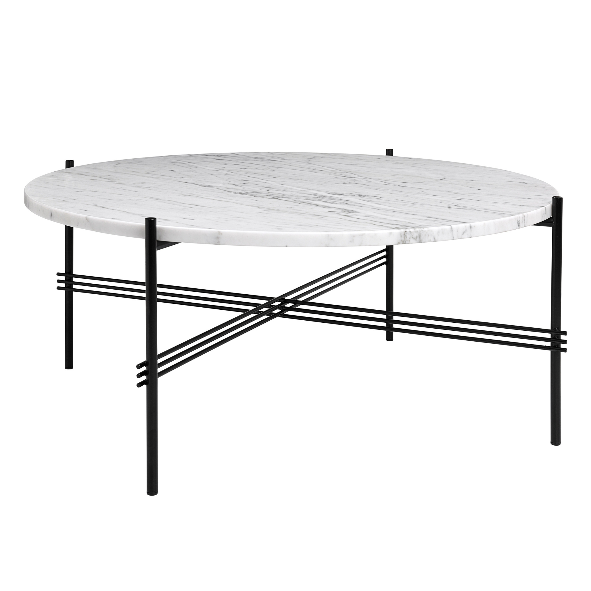 Gubi - TS Soffbord Ø 80 H. 35, Top: Bianco Carrara Marble, Base: Black - Soffbord - GamFratesi - Vit - Metall/Sten