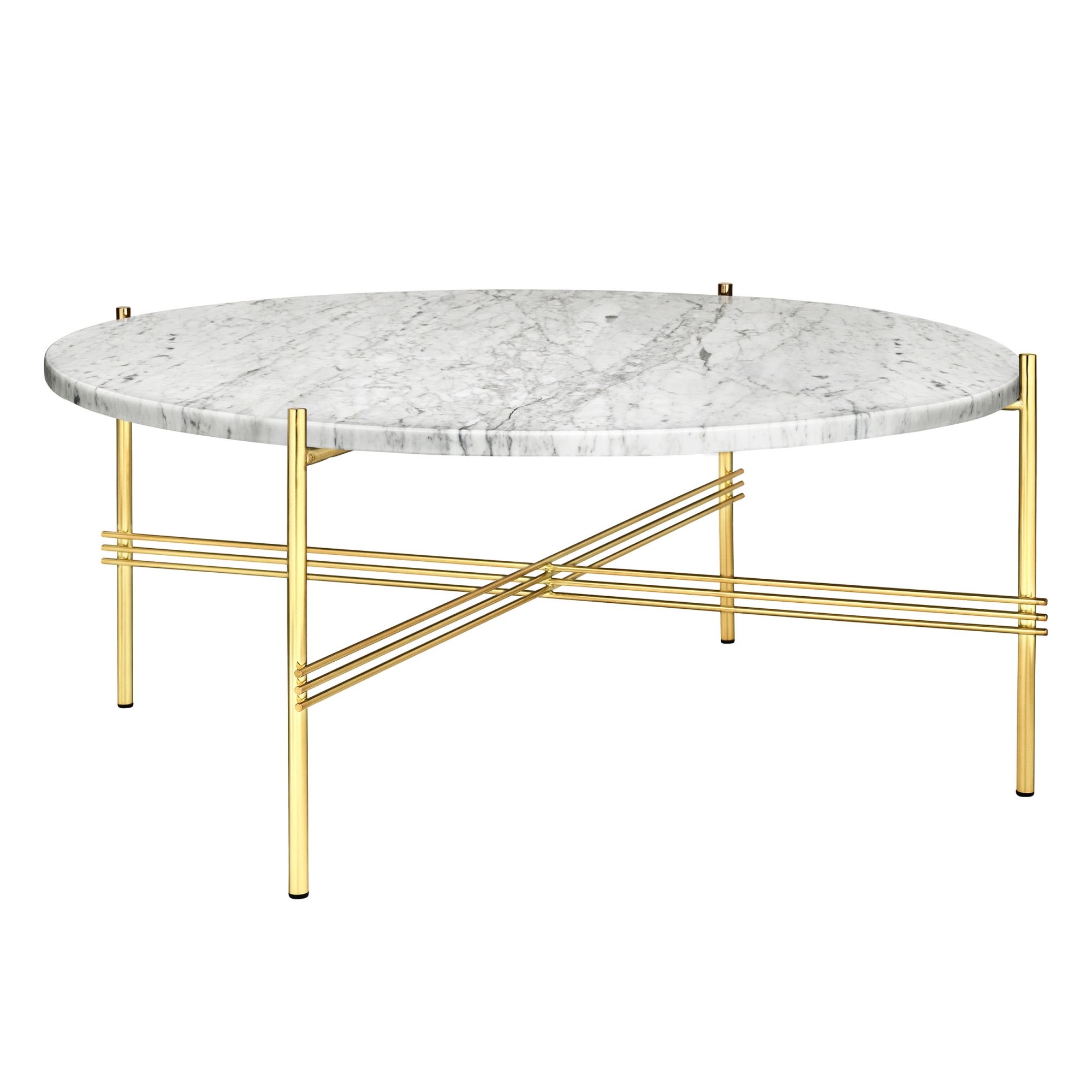 Gubi - TS Soffbord Ø 80 H. 35, Top: Bianco Carrara Marble, Base: Brass - Soffbord - GamFratesi - Vit - Metall/Sten
