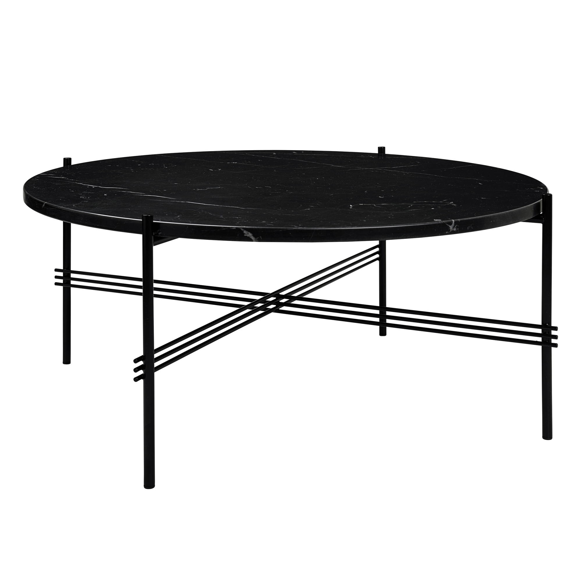Gubi - TS Soffbord Ø 80 H. 35, Top: Nero Marquina Marble, Base: Black - Soffbord - GamFratesi - Svart - Metall/Sten