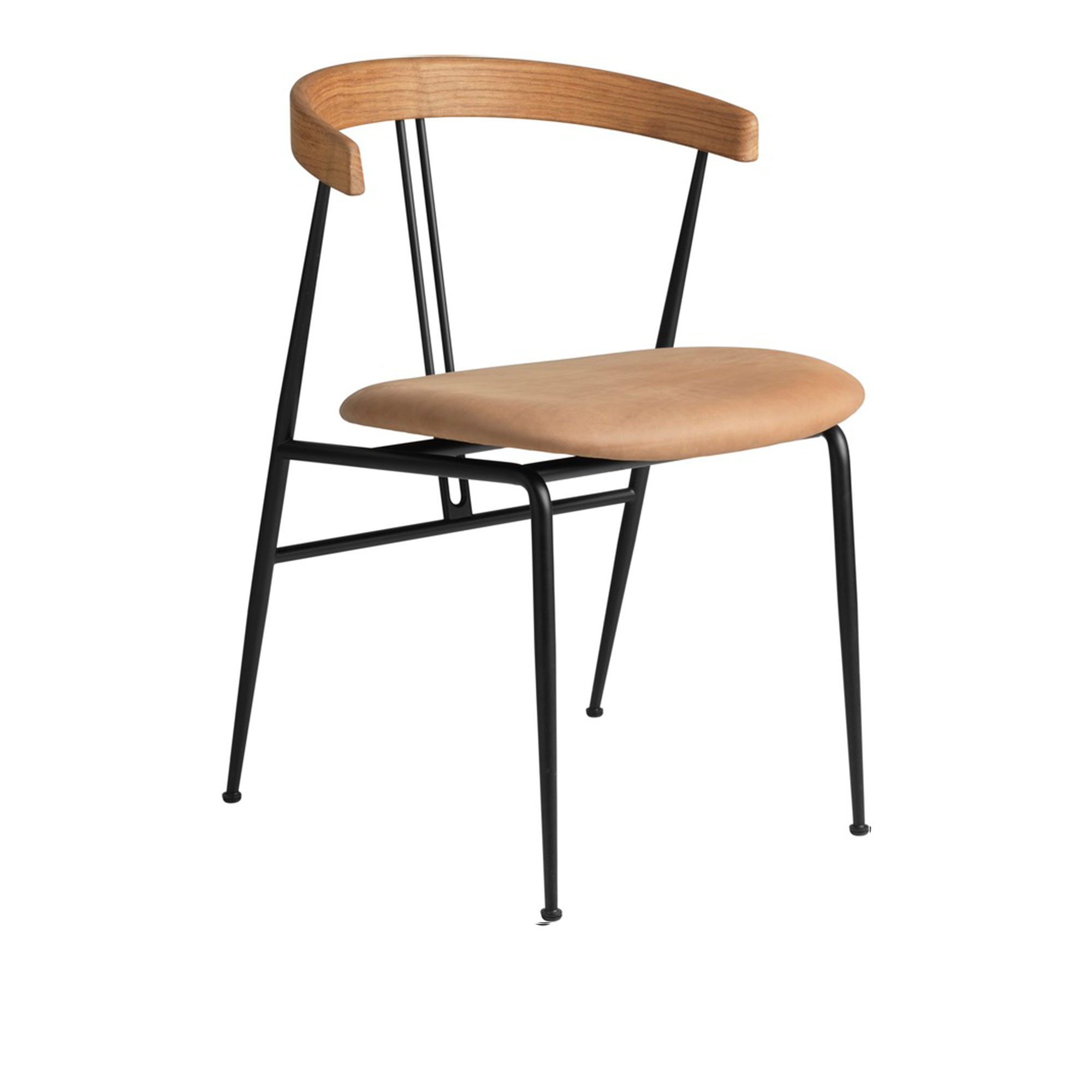 Gubi - Violin Dining Chair Oak Backrest Sorensen Dunes 21004 Camel - Matstolar - GamFratesi - Brun,Träfärgad - Läder/Metall/Trä
