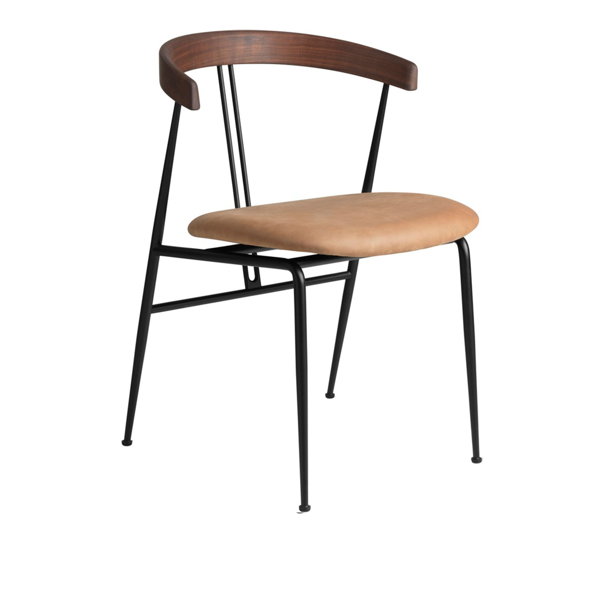 Gubi - Violin Dining Chair Walnut Backrest Sorensen Dunes 21004 Camel - Matstolar - GamFratesi - Brun,Träfärgad - Läder/Metall/Trä