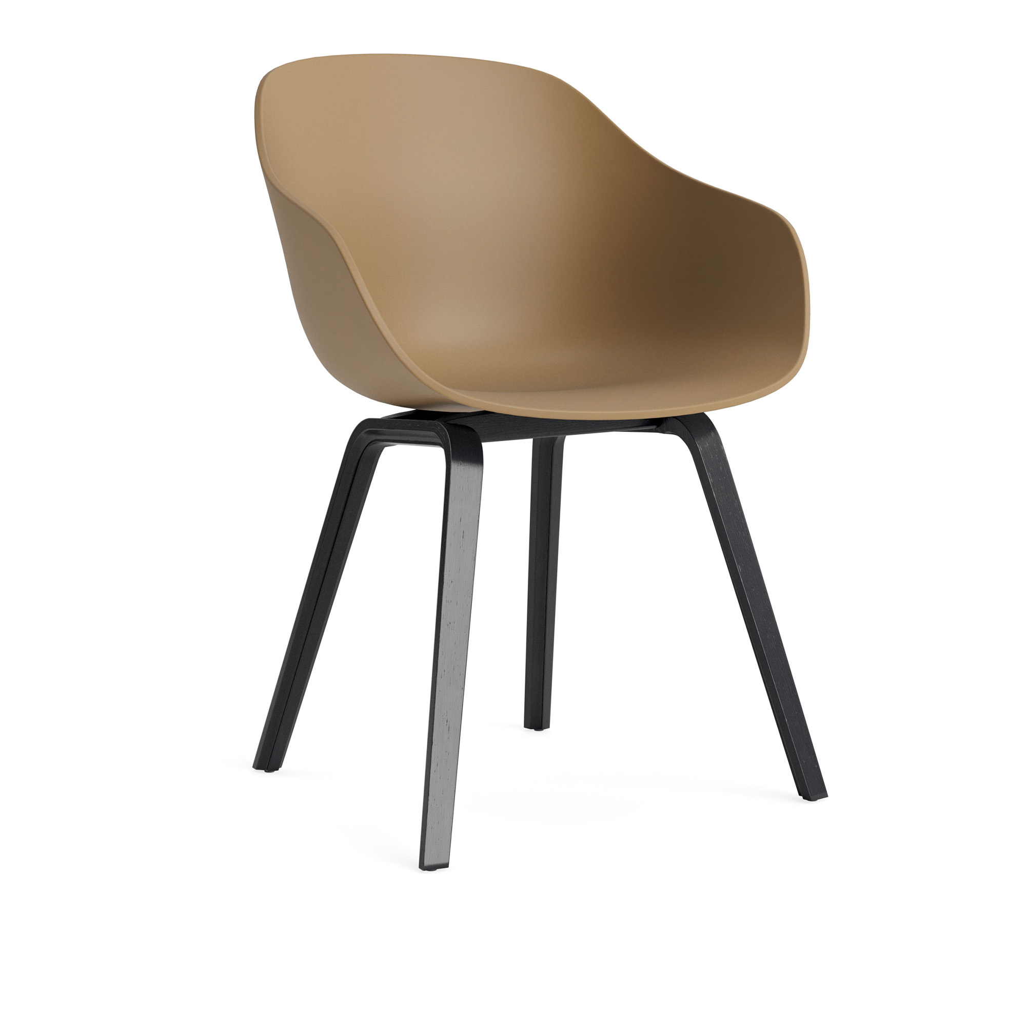AAC 222 från Hay, designad av Hee Welling, kännetecknas av en modern design med träram och ben i svartlackerad ek. Stolens böjda skal har en högre rygg för extra stöd och ett djupt säte för avslappnad komfort. De lägre armstöden gör det enkelt att placera stolen under bord. Basen i svartlackerad ek framhäver stolens moderna utseende och hållbarhet, vilket gör den till ett flexibelt val för olika rum och inredningsstilar.