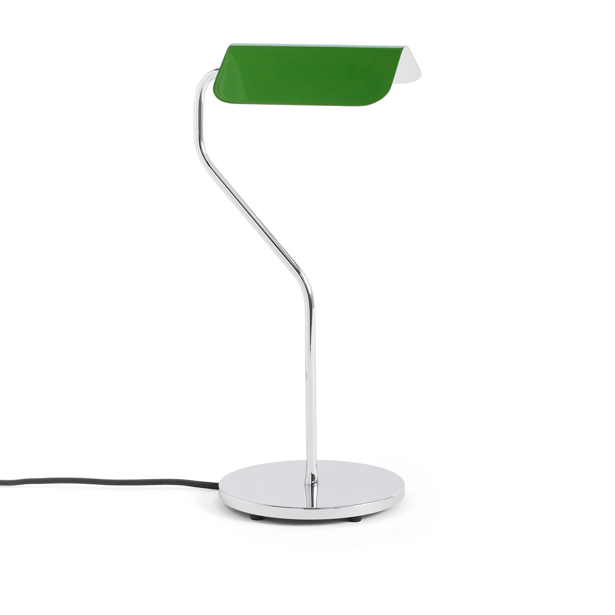 Apex bordslampa från varumärket HAY är formgiven av den brittiske designern John Tree. Inspirerad av den tidlösa Bankers Light designen har lampan ett karakteristiskt viktigt stålskärmslock som skapar en toppad taklinje, vilket ger upphov till namnet ""Apex"". Den förkromade basen och den elegant vinklade armen tillsammans med den färgstarka nyansen som kan roteras 360 grader ger en dynamisk design. Apex bordslampa är en funktionell belysningslösning som passar perfekt för olika rum och användningsområden. Oavsett om det används som arbetsbelysning på ett skrivbord eller som en läslampa på ett nattduksbord, erbjuder den både form och funktion.